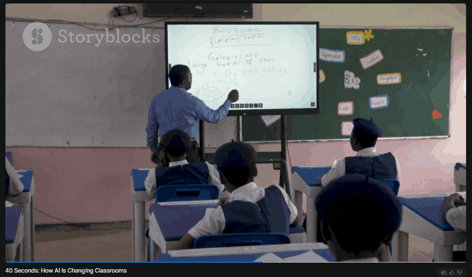 “Create a 40-second video about how AI is transforming education, with upbeat background music and a friendly voiceover.”