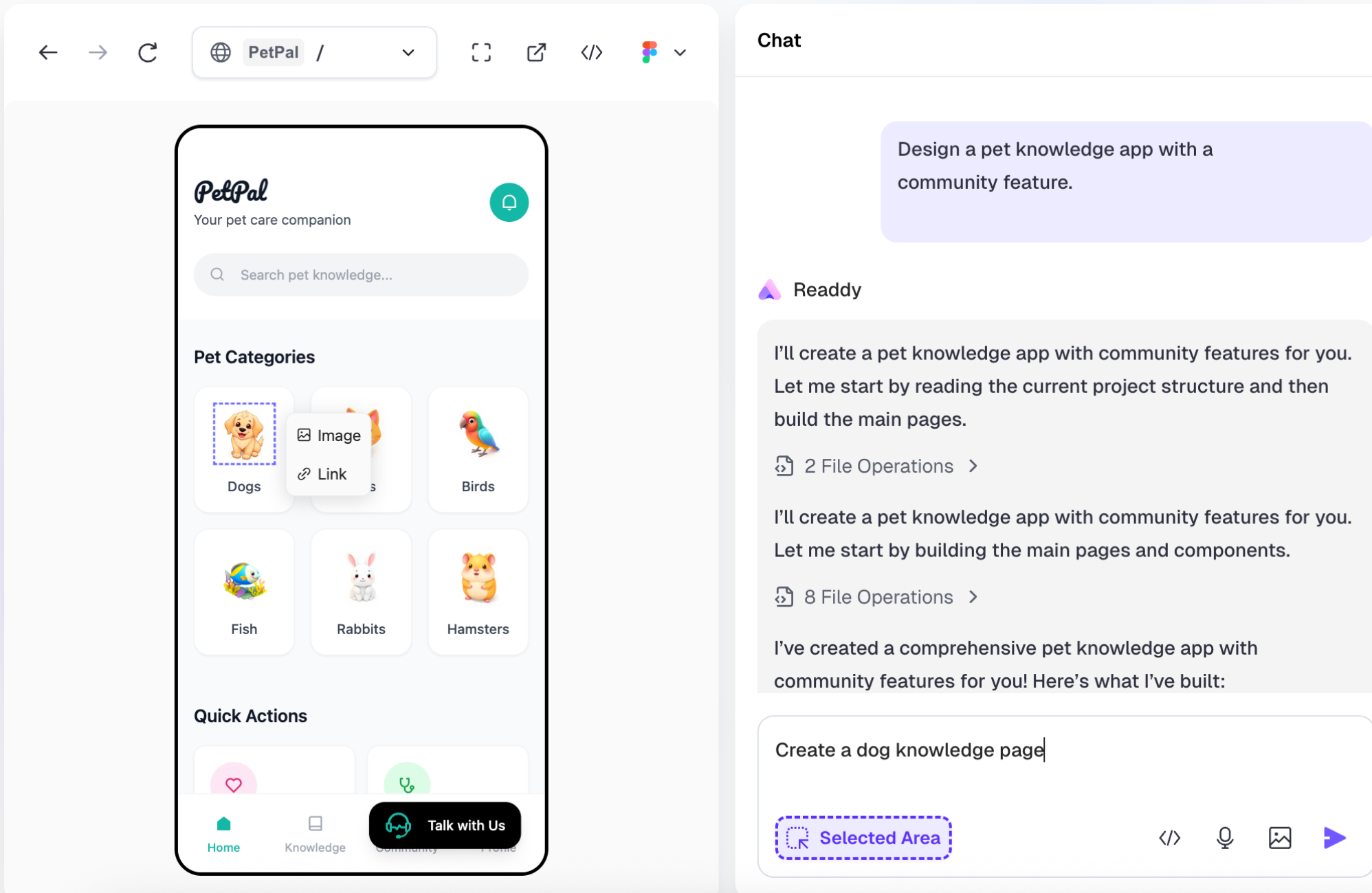 Prompt: Design a pet knowledge app with a community feature.