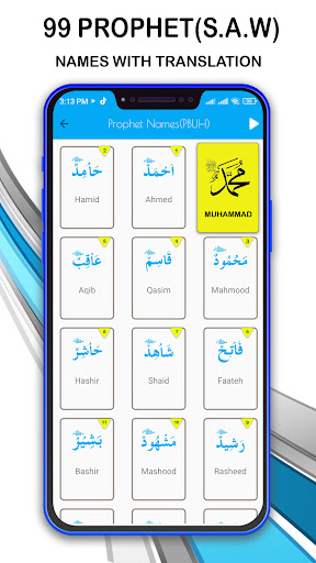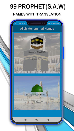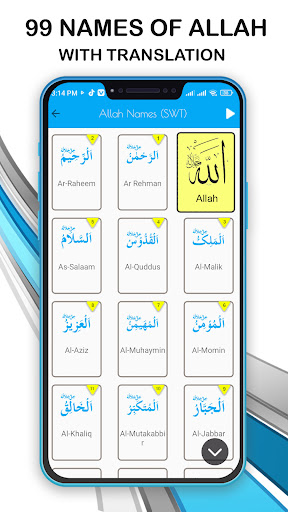 All 99 Names Of ALLAH and Prophet Muhammad(PBUH) with Audio translation and graphics with free Muslim app.