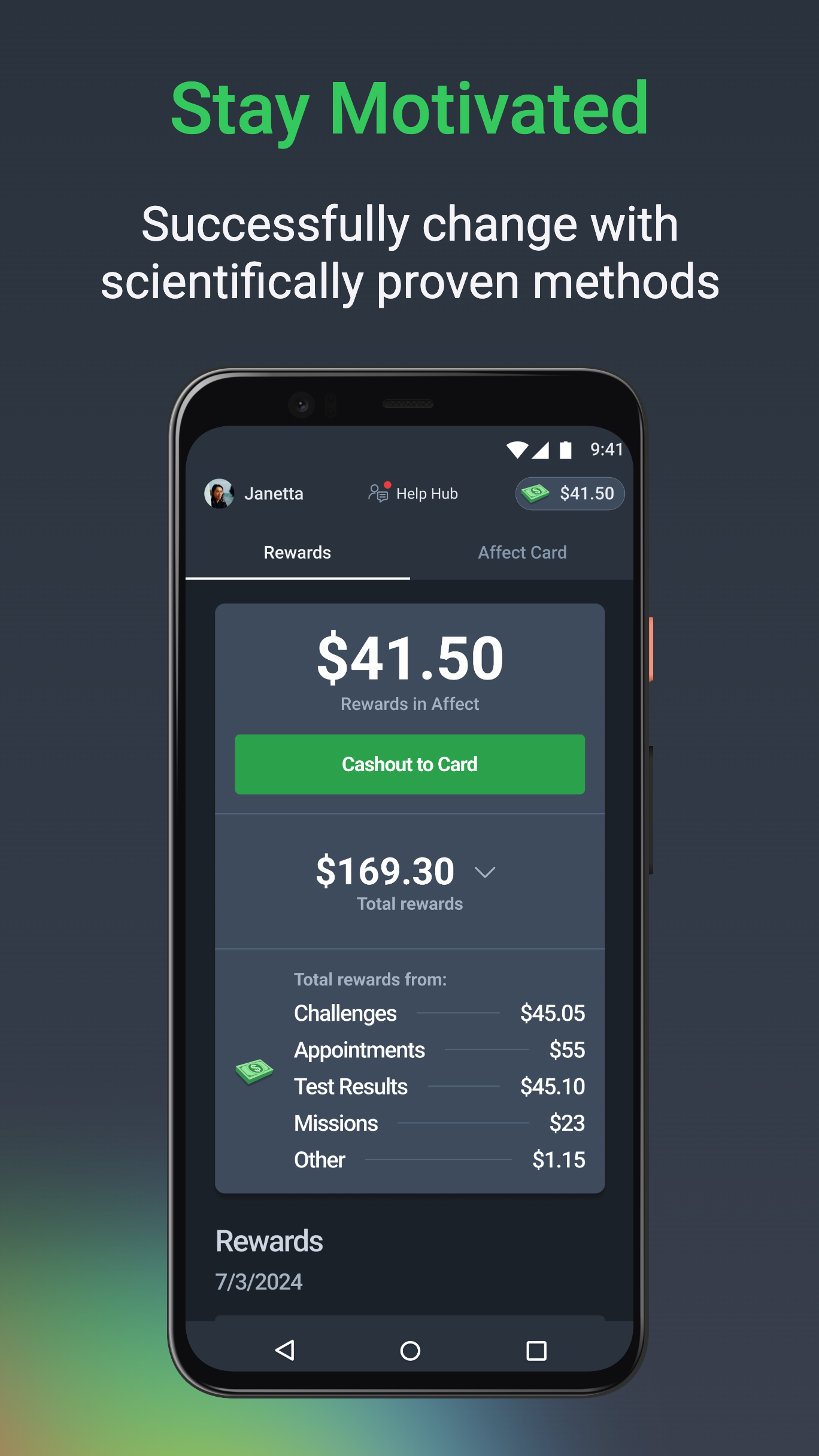 Affect works better. Our rewards system is based on decades of research on successful behavior change and technology. People decrease use by 50% in the first month. Affect's program results in outcomes that are twice as effective as traditional clinical models. Recovery isn’t painful.