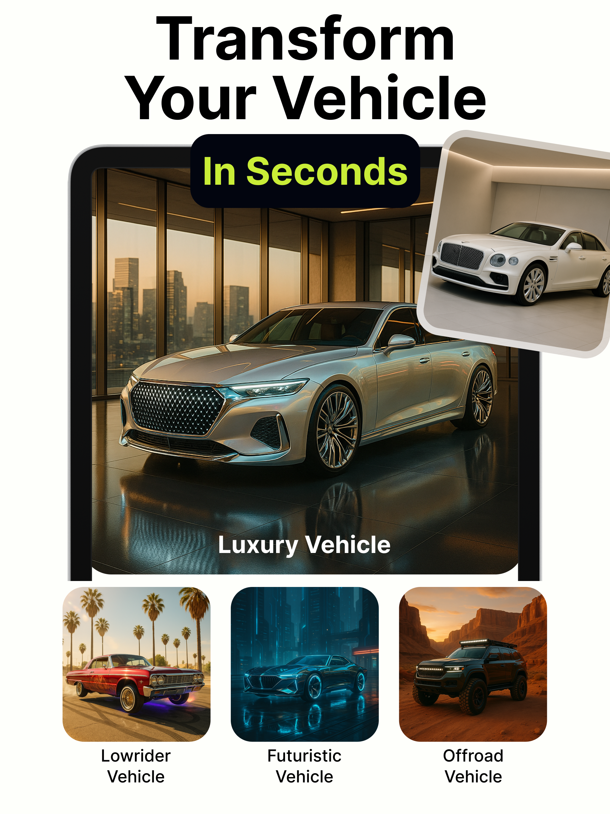 From modified street racers and JDM icons to lifted trucks, cyberpunk builds, or retro classics — you can customize, tune, and visualize any vehicle like a pro. Just upload a photo or describe your concept, and our powerful AI engine will generate your dream car instantly. 🔧🔥