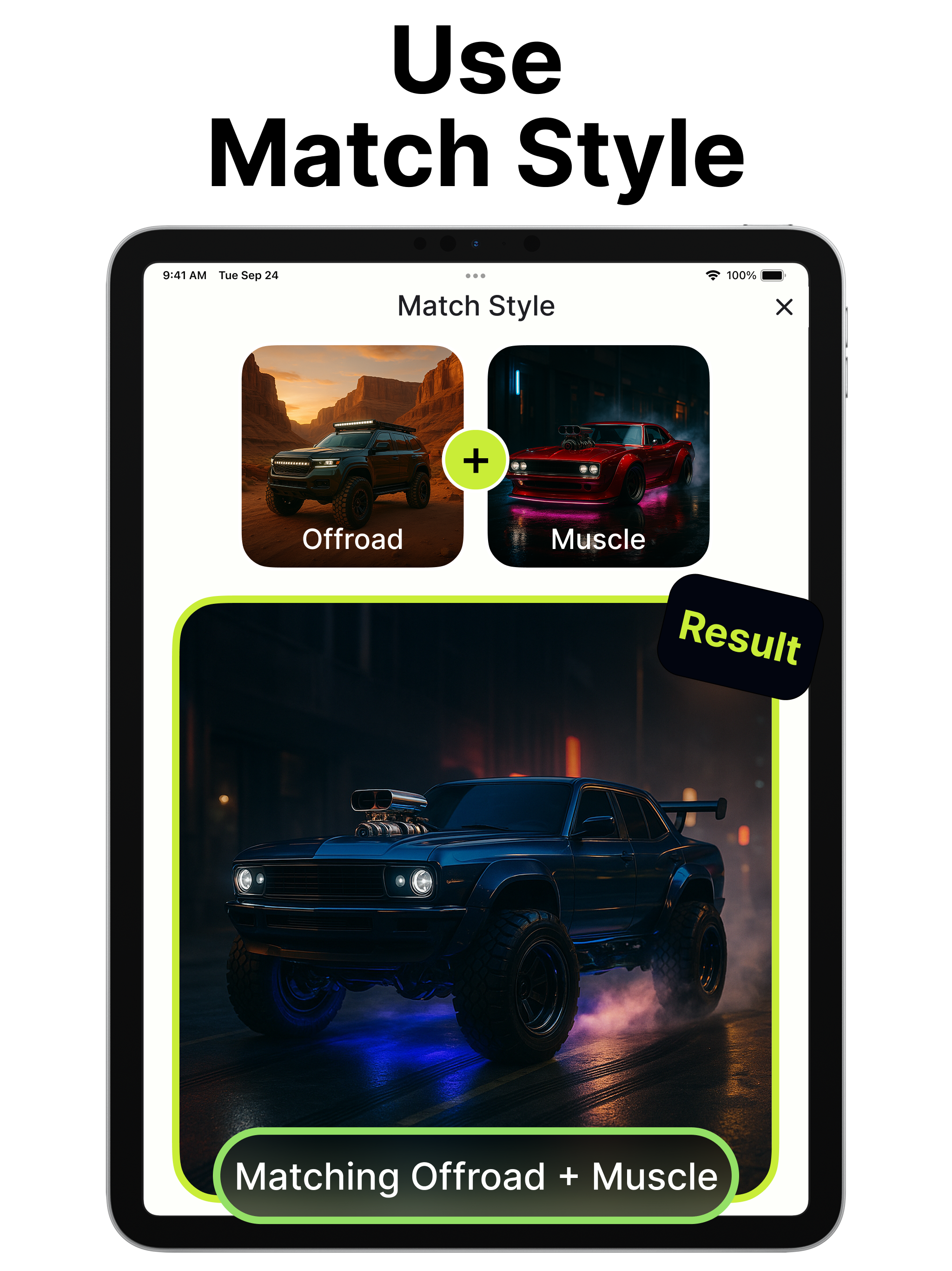 Don’t have a photo? No problem. Just describe your vision — like “a slammed JDM coupe with neon underglow” or “a matte black off-road SUV with roof lights” — and let the AI generate your full car concept. Great for ideation, content creation, and rapid styling.