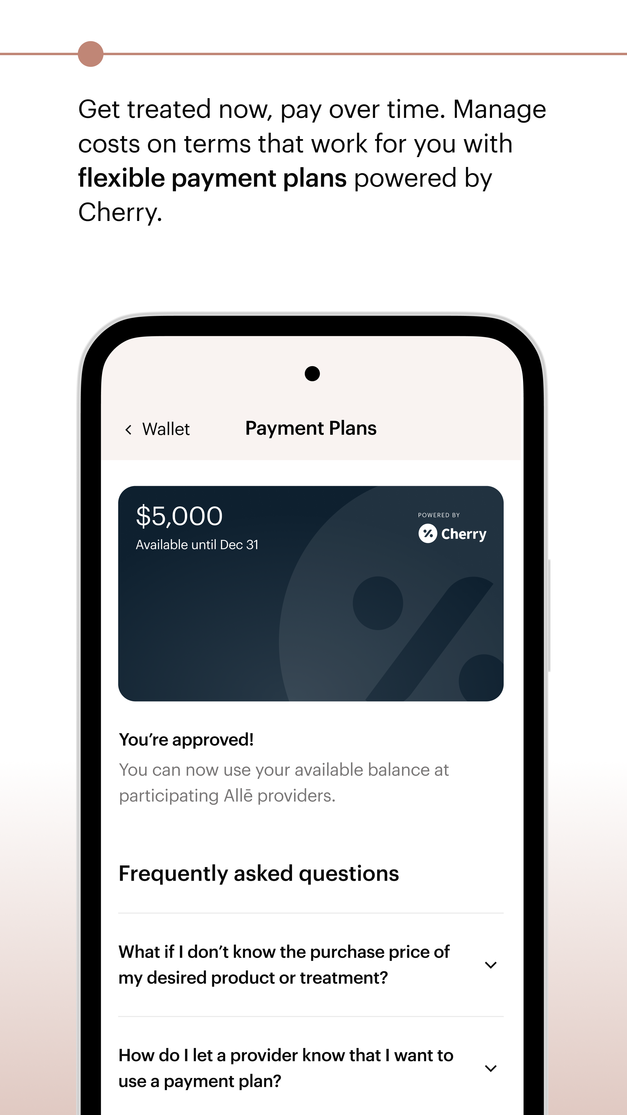 Allē is your go-to app for your aesthetic needs, giving you access to curated content, treatment information, exclusive offers, and your Allē Wallet.