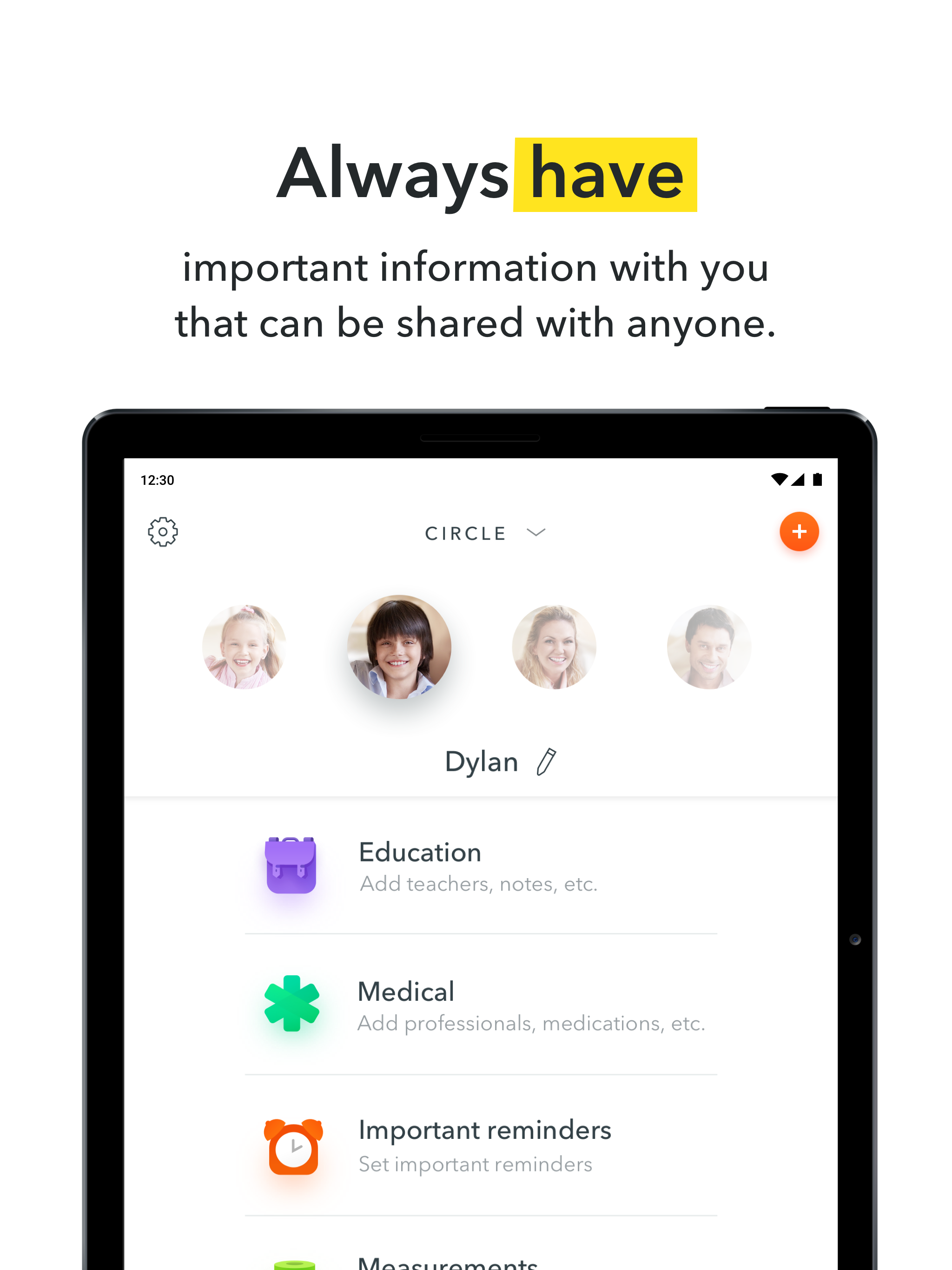 • Save or share important child-related information (allergies, special medications, alternative child care options, measurements, school related information, etc.) with your co-parent or other third parties.
