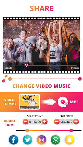 Audio Extractor ( MP4 to Mp3 Converter) is easy to use and allows you to precisely cut audios. You can apply audios to your Favorite Videos with looping option.