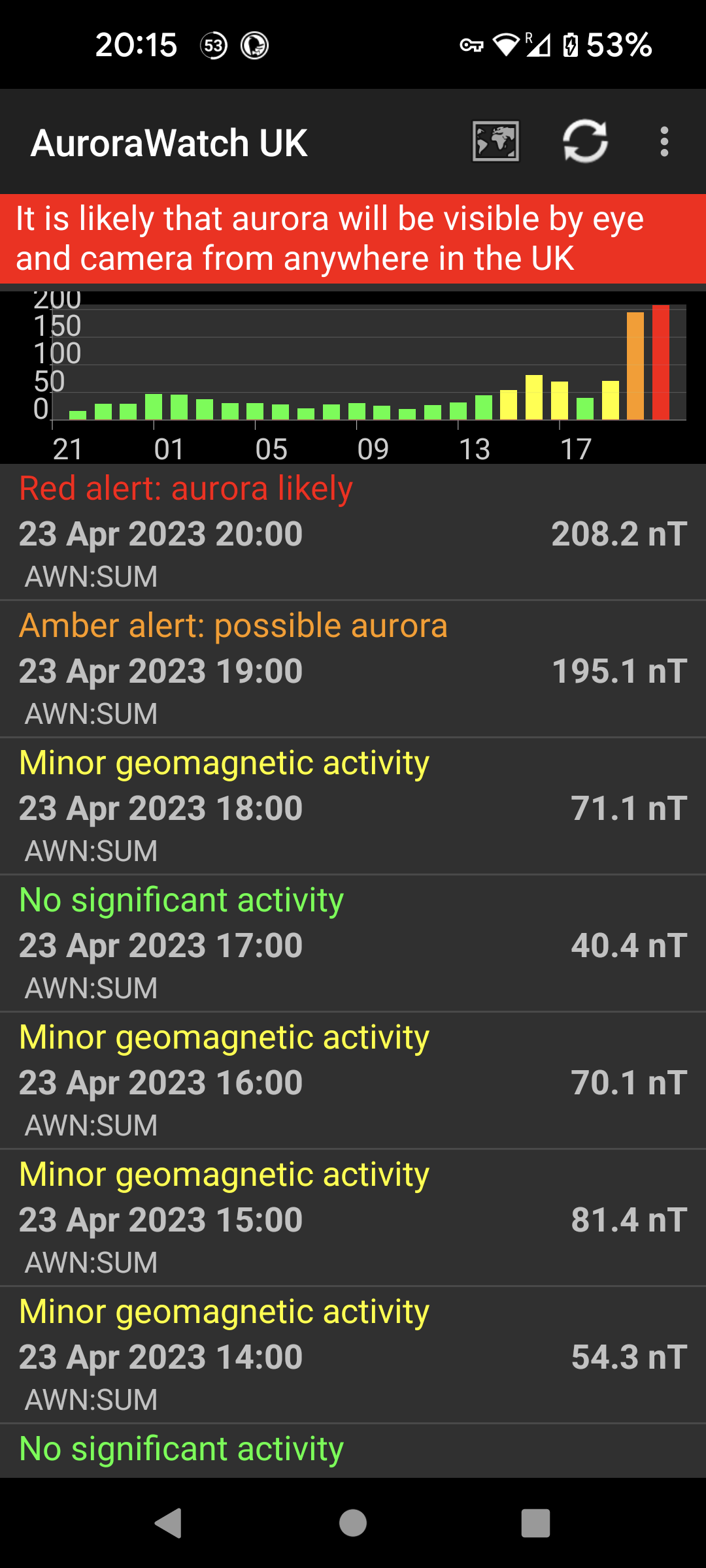 The Aurora Watch UK (Android) app is developed and maintained by Smallbouldering Projects, it is not an 'Official' app.