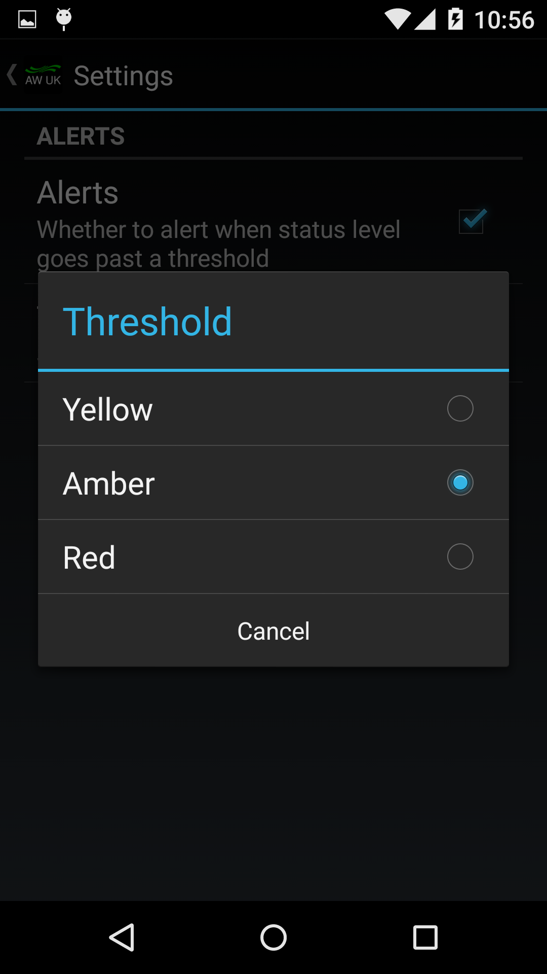 Add more (higher) alert thresholds so that locations such as the south of England can choose not to be alerted by \'just\' status Red (200nT).
