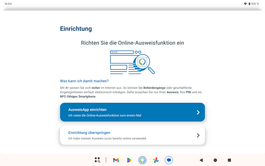 The Identity Card App is software that you install on your smartphone/computer/tablet to identify yourself online with your ID card, your electronic residence permit or the eID card for Union citizens.