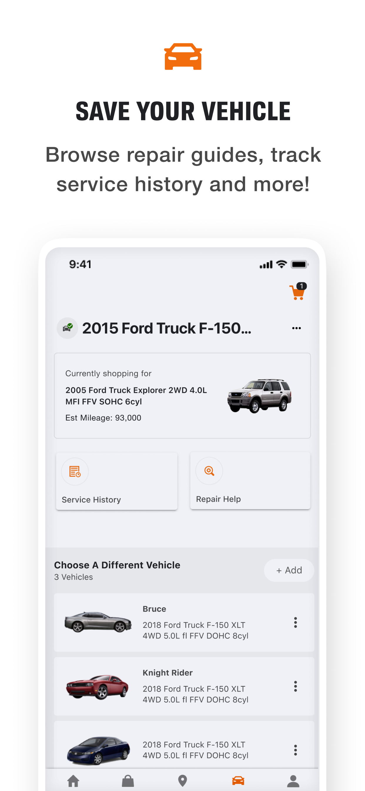 Keep track of all of your vehicles in one convenient place. Track every job with the Service History feature, view DIY suggestions with Repair Help and check your vehicle's specifications.