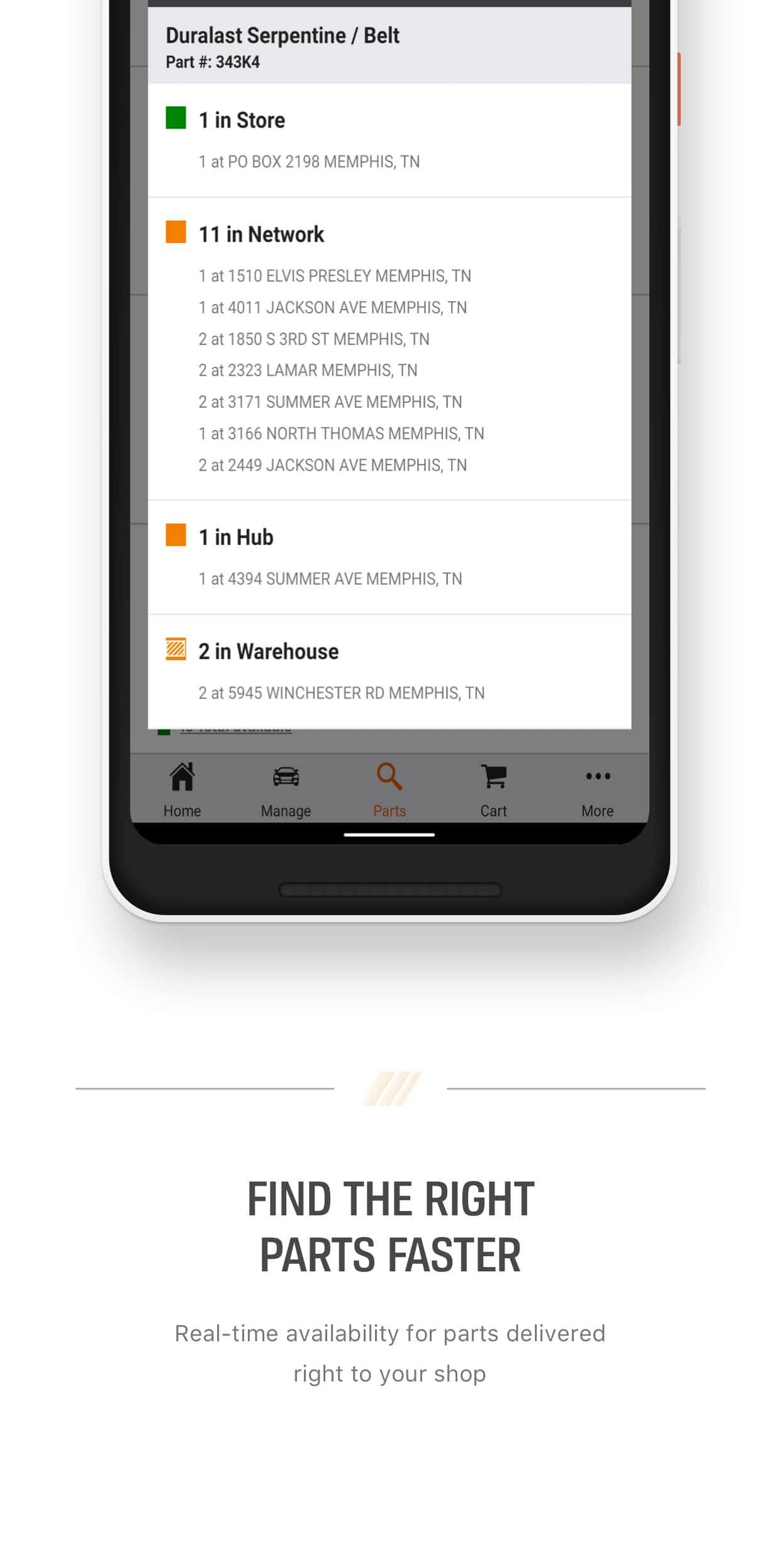 Our app allows you to see our full catalog of parts while viewing extended inventory at the AutoZone stores in your area to ensure that you get the part needed to complete the job.