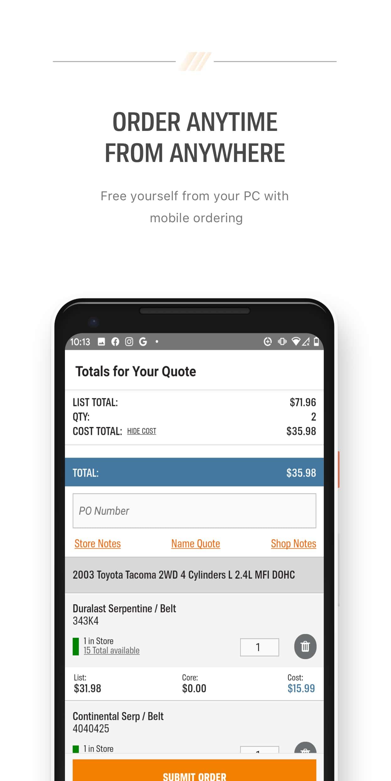 Identify and improve order accuracy by using features like VIN scanning or the license plate decoder to help order the right parts fast.