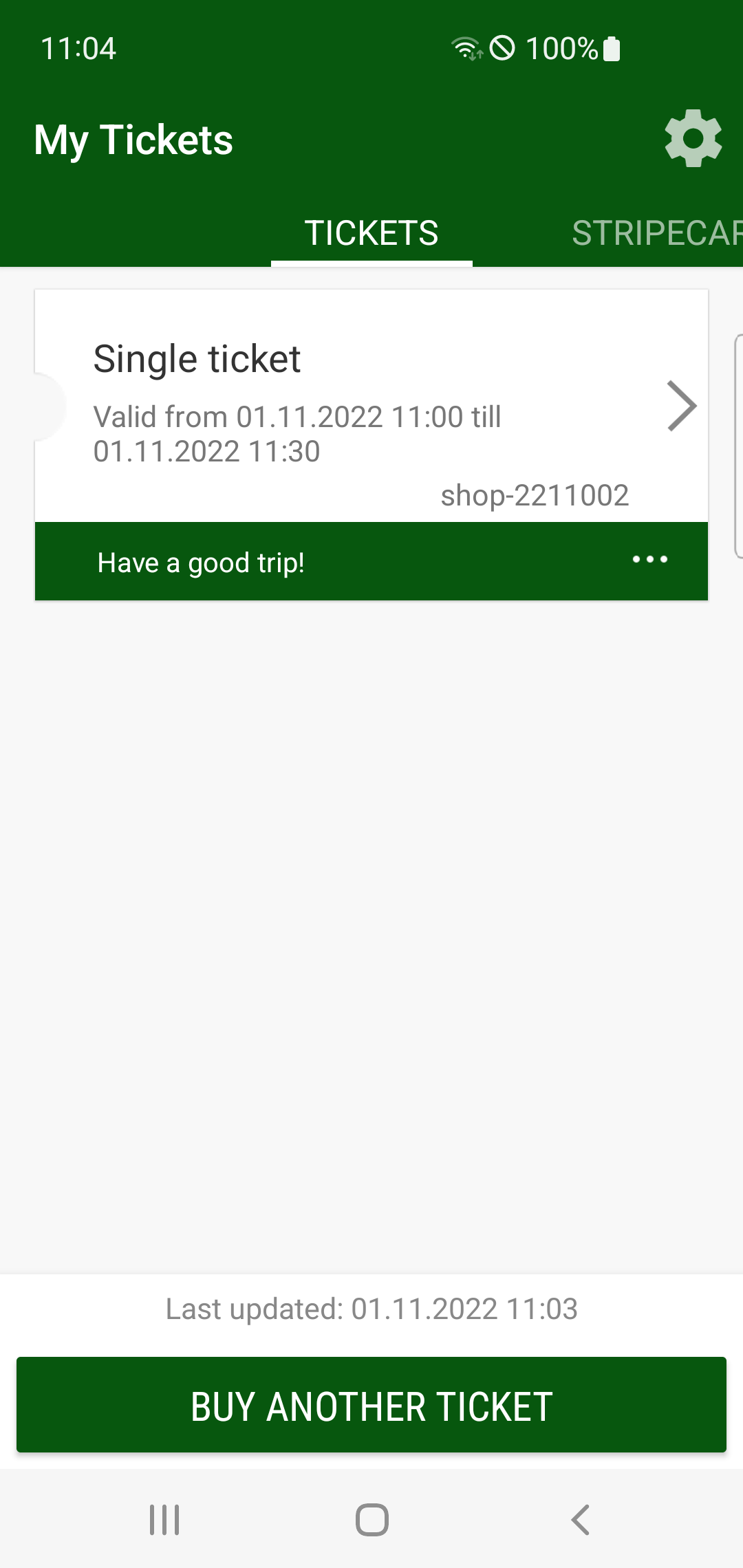 Please notice: Tickets must always be bought prior to start of journey. Also be aware that you need a functional internet connection on your device in order to purchase or to use stripes on a stripe card.