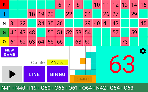 ►In 75 Ball Bingo you can choose to play a random pattern, or choose one manually.