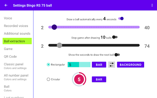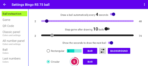 ►Option to show the countdown in seconds to draw the next ball. Time is displayed numerically and graphically.