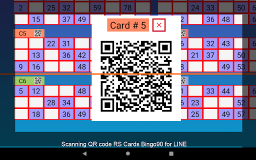 ►Option to scan QR codes to quickly and easily check card numbers. It only works with the QR codes generated by the App Bingo RS Cards, available in the Google Play Store. In order to scan QR codes, you need to grant access permission to the camera.
