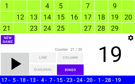 ►In 30 Ball Bingo you can win by calling Bingo, and optionally by calling a line, column or diagonal.