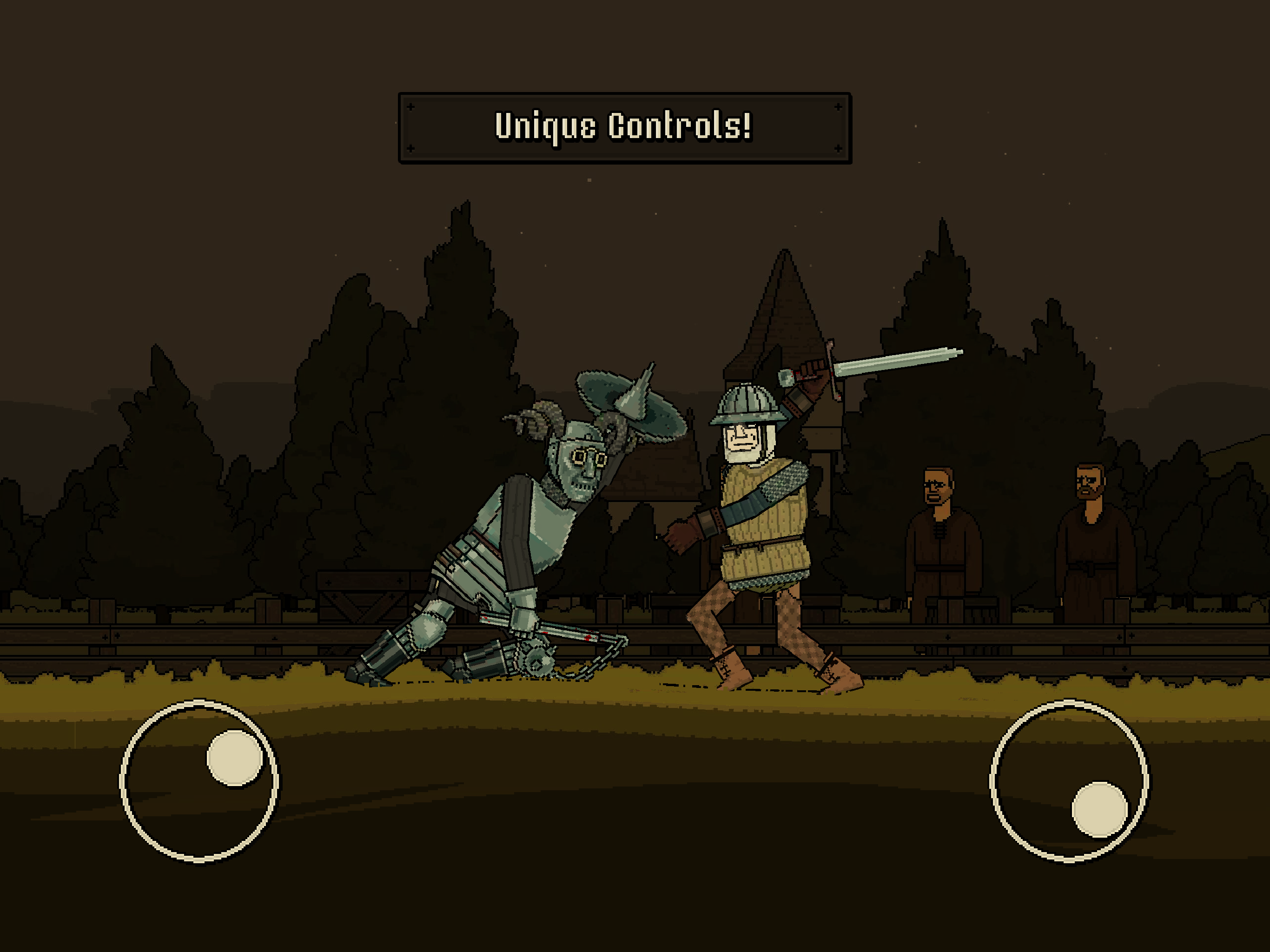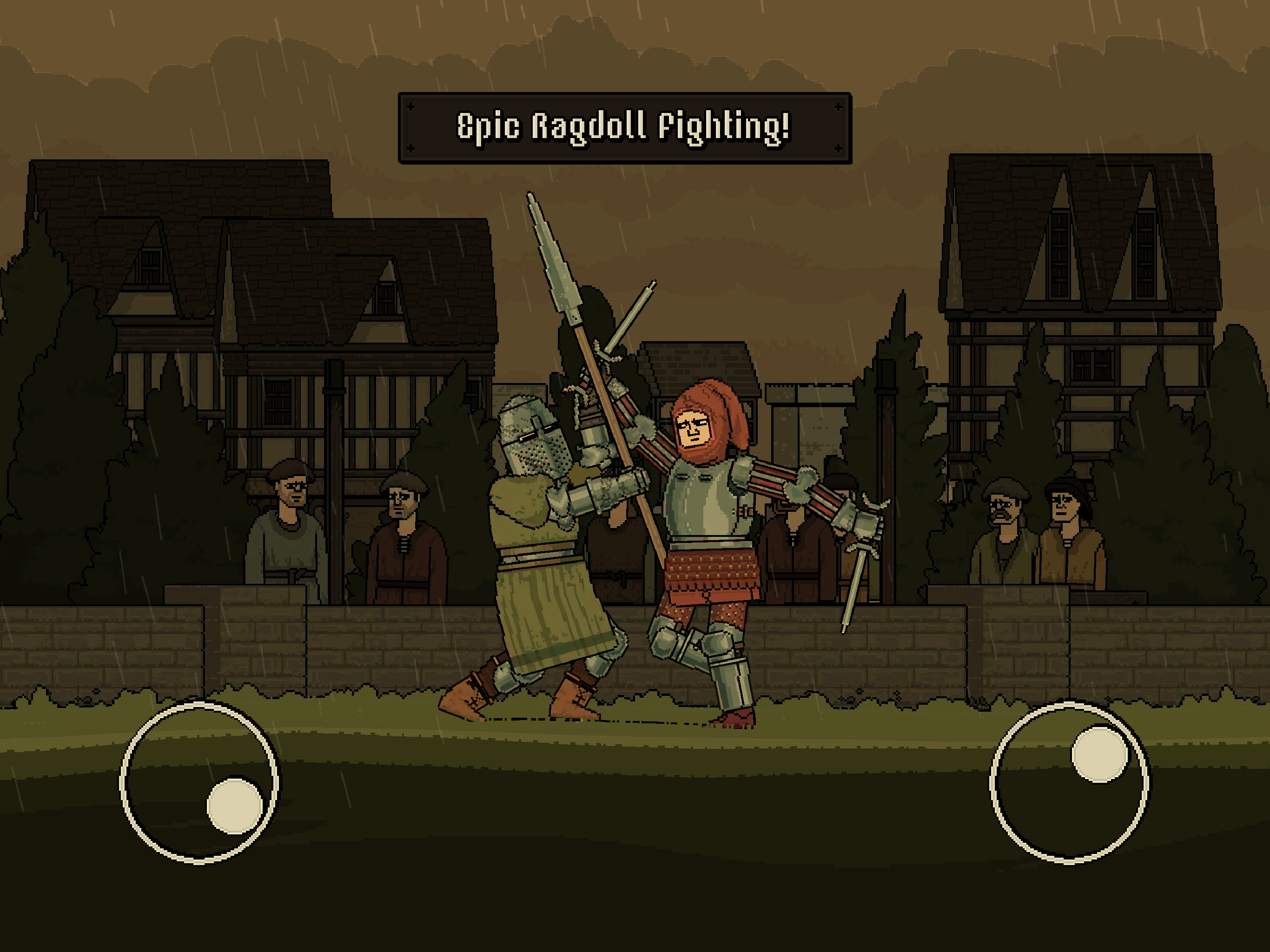 In a unique blend of pixel art, 2D physics and ragdoll mechanics, Bloody Bastards offers a fighting experience like nothing else. Tap and hold on either side of the screen to control each hand individually and double tap to move. Choose from hundreds of different weapons, shields, body, leg and head gear to create thousands of lethal combinations.
