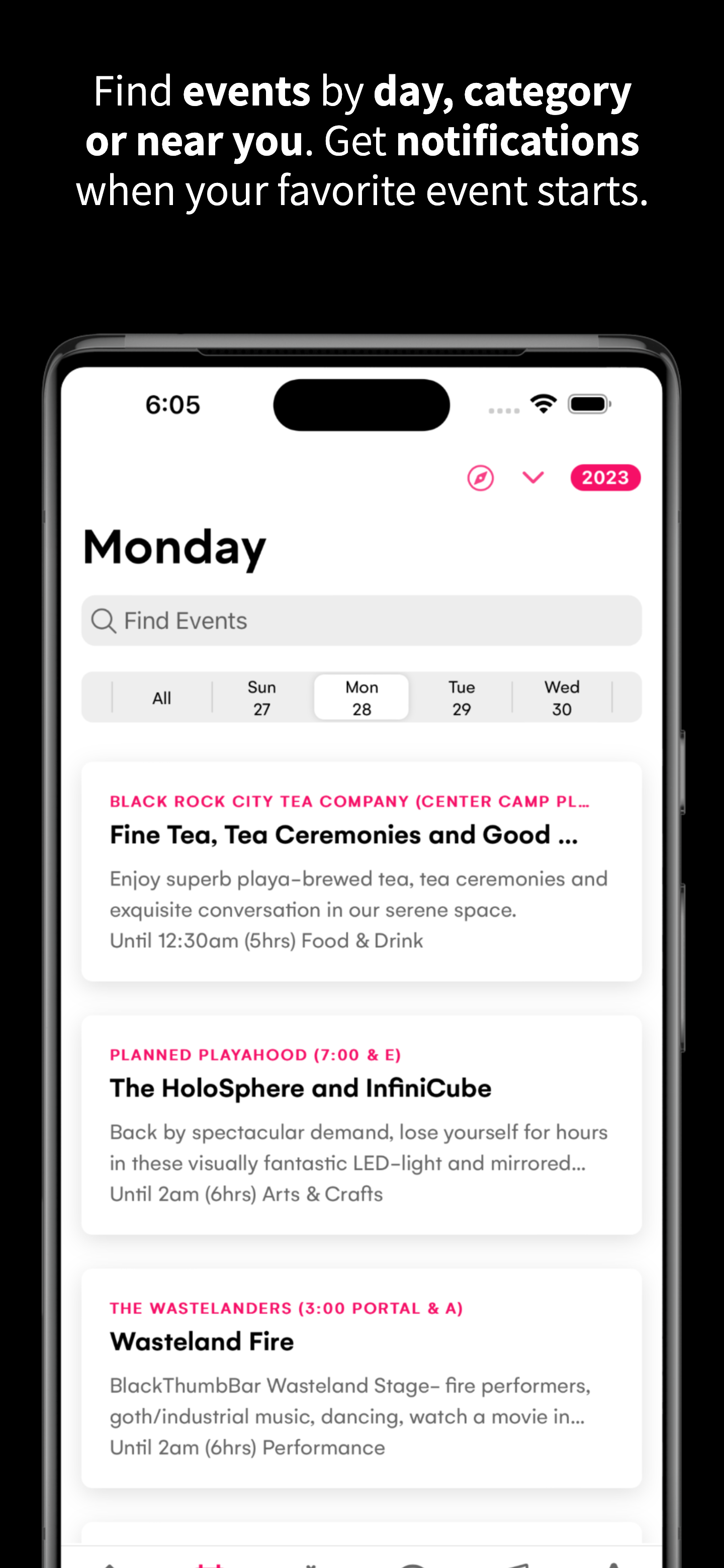 For Burning Man this is an unofficial app with data source from innovate.burningman.org and www.rockstarlibrarian.com.