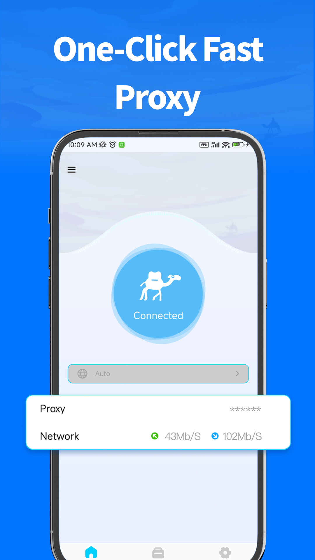 Camel VPN is easy to use, one-click connect, and it is stable.