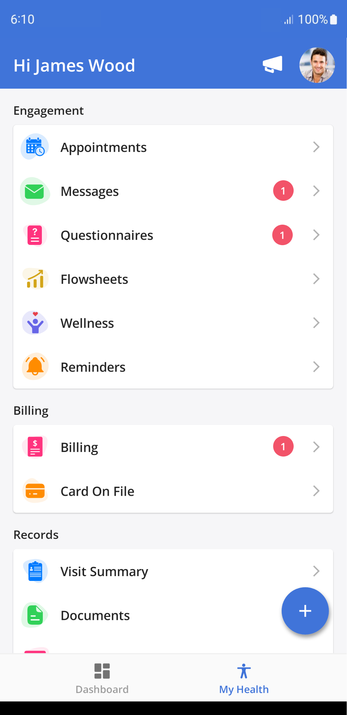 Appointments, send messages, and see the shared health record from the practice.
