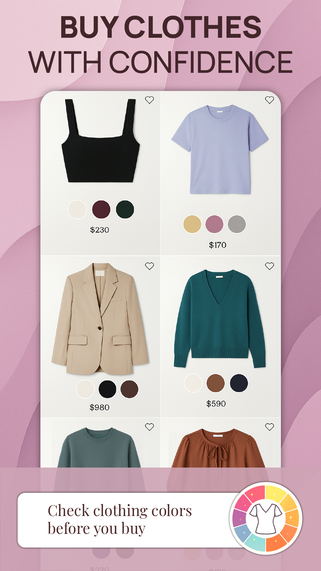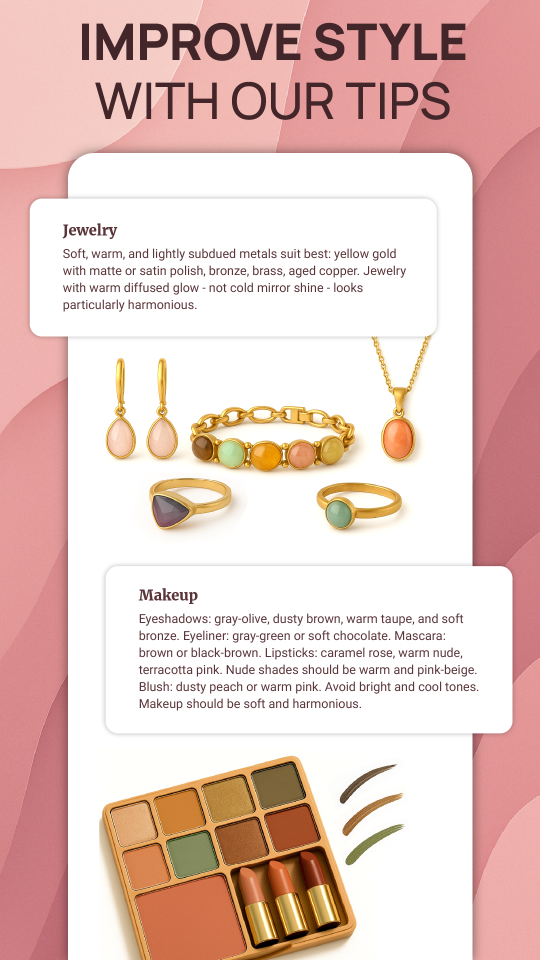 Color analysis and personal style AI consultant app that uses the 12 seasons theory to help you find your best colors and create perfect outfits. With the automatic personal color analysis feature, simply take a selfie to discover your season color, seasonal color palette, and makeup colors that harmonize with your skin tone, eyes, and hair color.