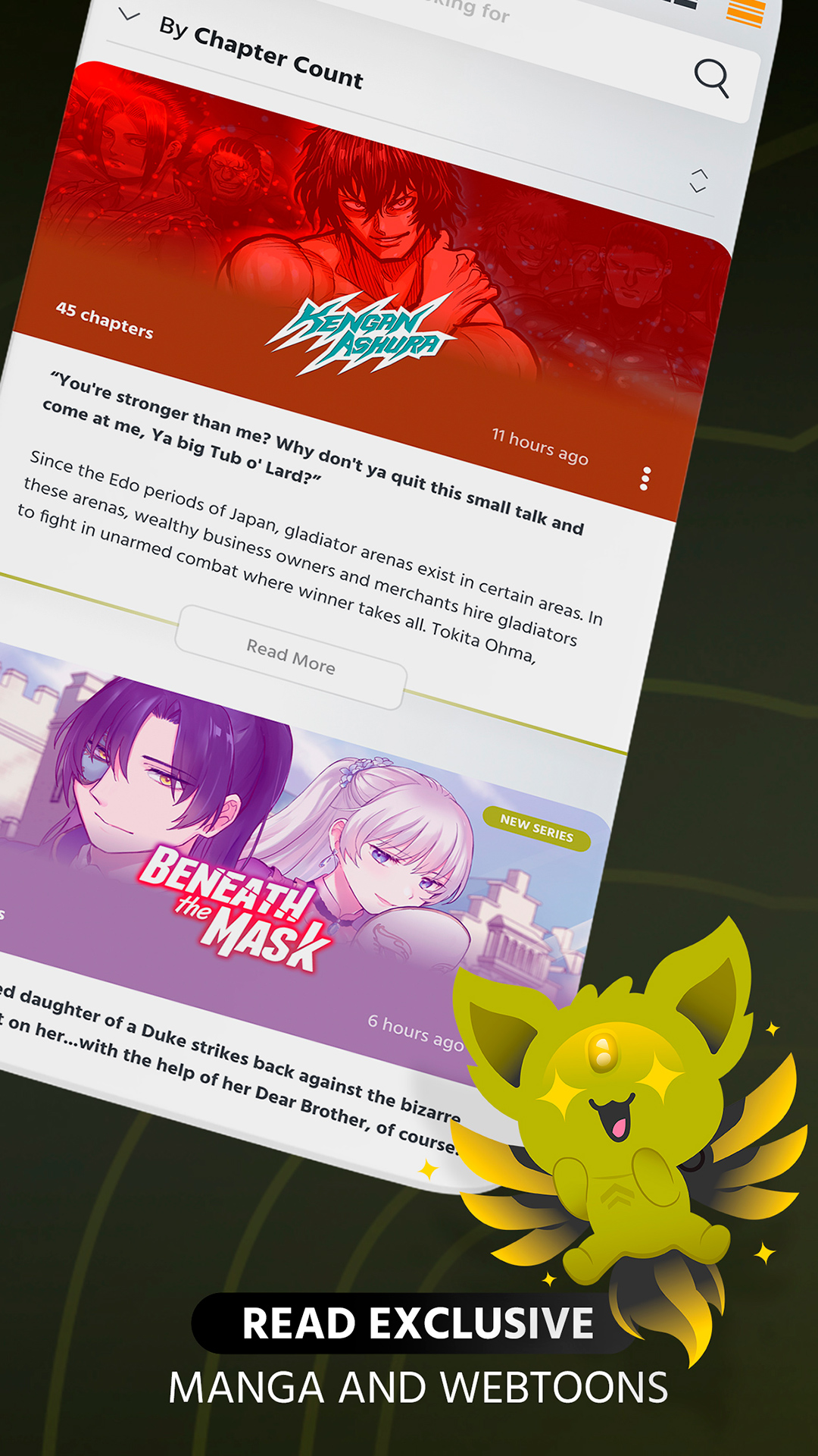 Partnerships with Shogakukan’s MangaOne division, Hakusensha, SQUARE ENIX, Coamix, Compass, Manhuatai, Kanman Manhua, Kuaikan Comics, and Shinchosha gives you exclusive access to translated webtoons and manga that you only find on Comikey!