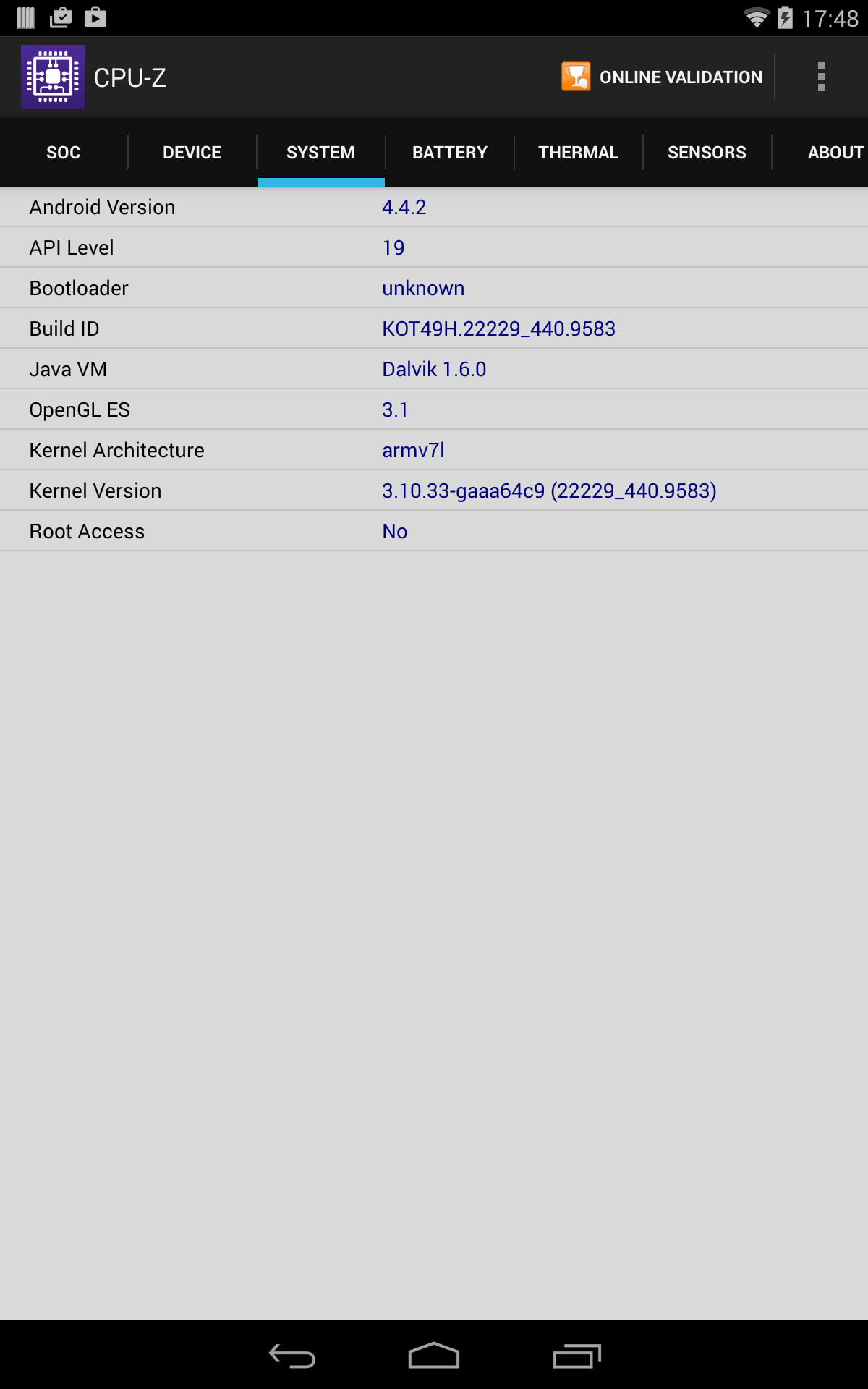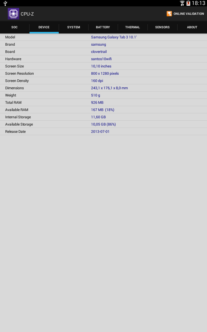 Android version of the popular CPU identification tool for PC, CPU-Z is a free application that reports information about your device.