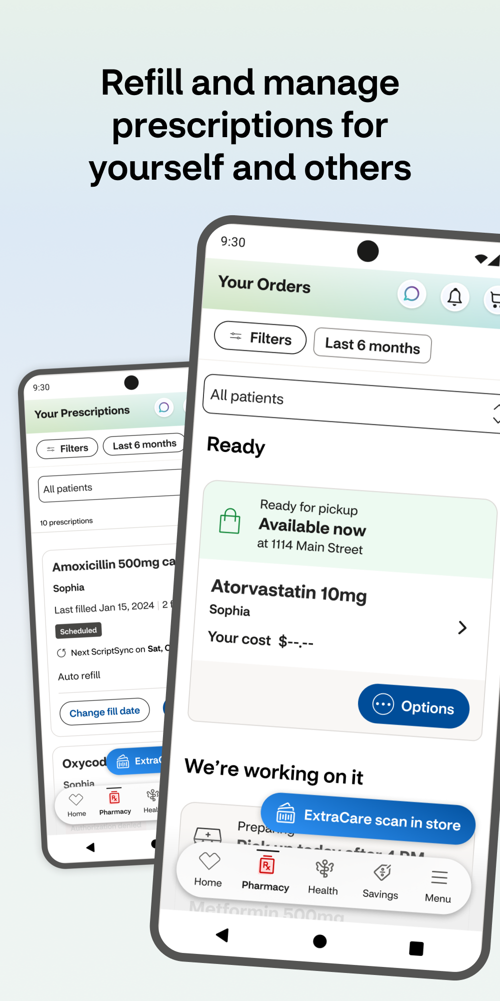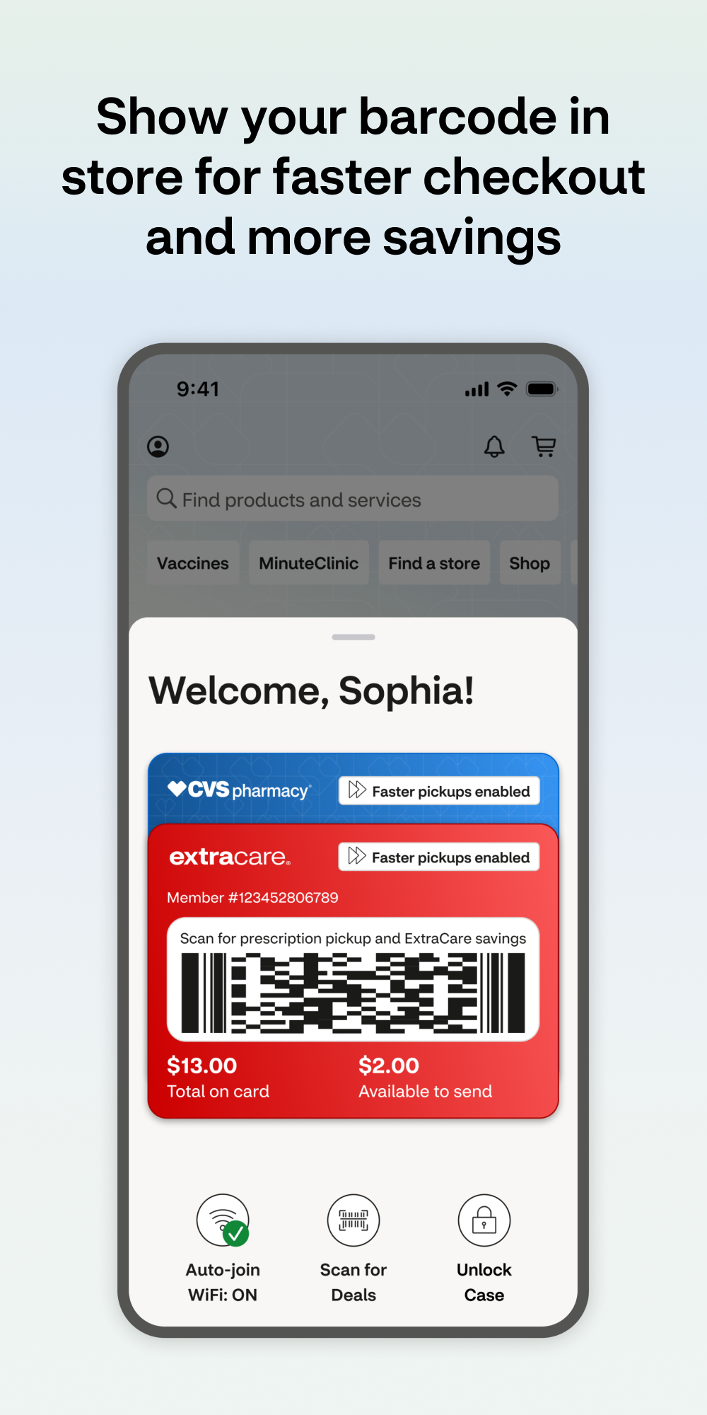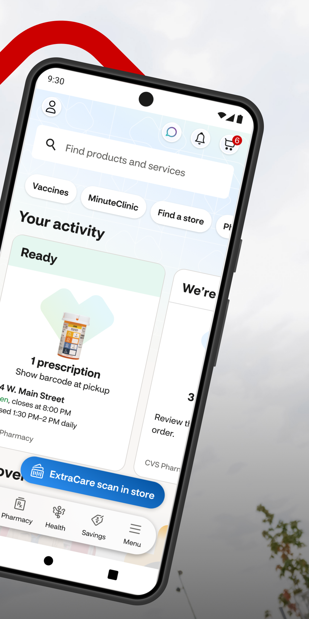 • Save with ExtraCare® and pick up prescriptions with a single scan (just tap “ExtraCare scan in store”).