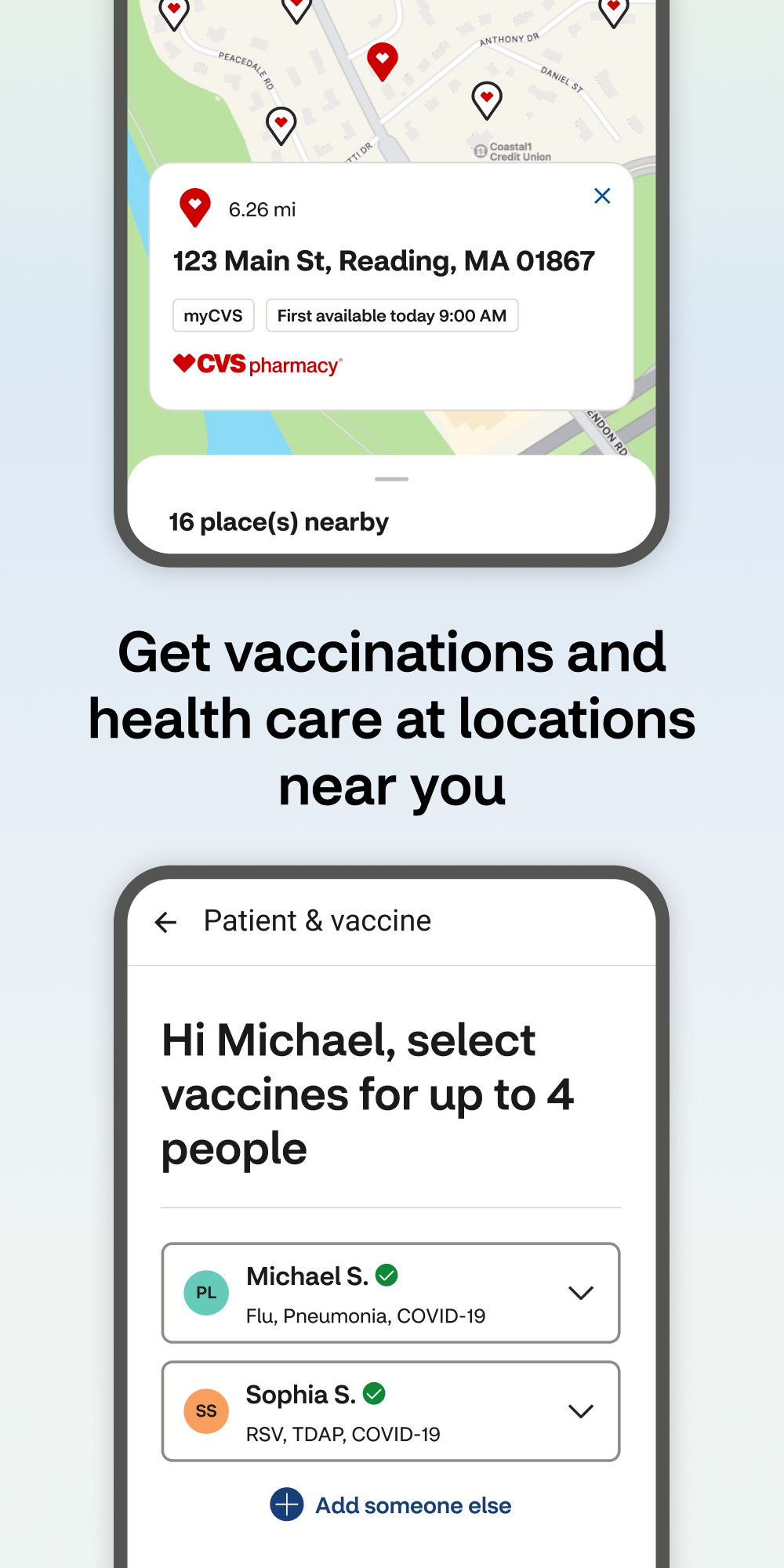 • Schedule vaccines and medical care for you and your family at a nearby CVS Pharmacy® or MinuteClinic®.