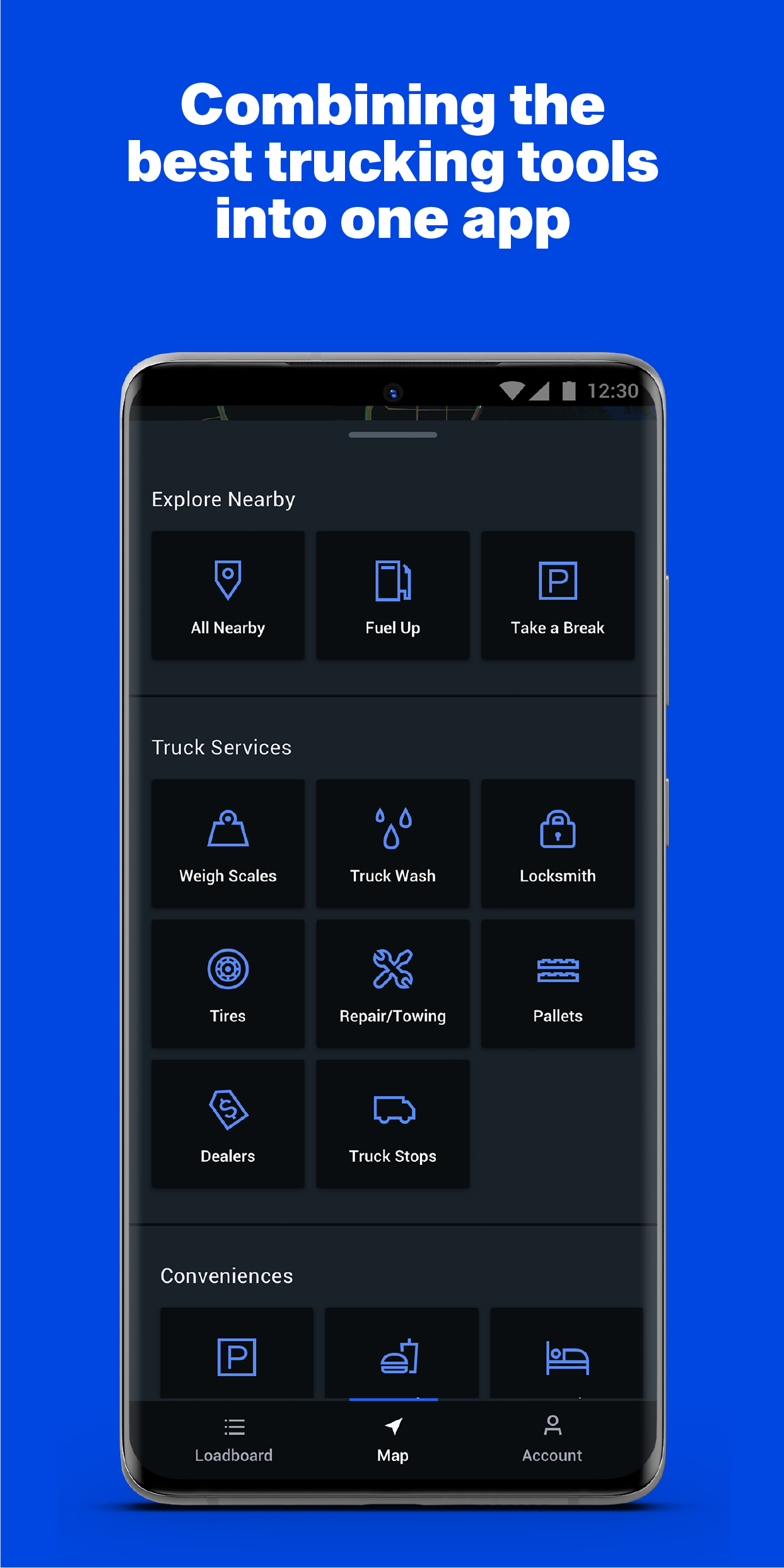 - Easily find truck stops, service stations, and rest areas for more strategic trip planning