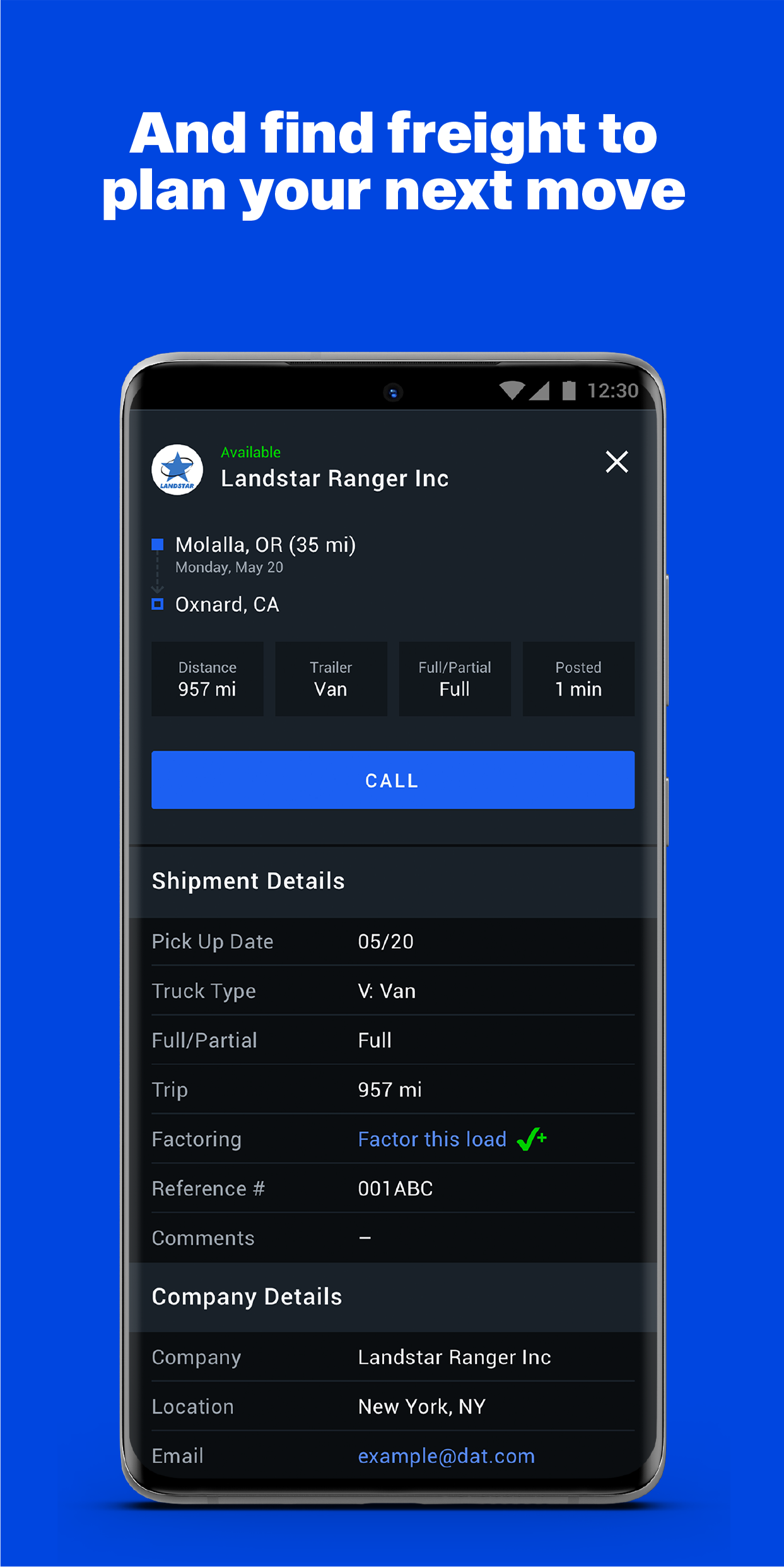 In addition to finding loads and truck amenities, you’ll have access to the most accurate market rate data, tools, and insights to forecast and negotiate from a position of strength. Get the load you want at the price you need with the DAT One app for truckers.