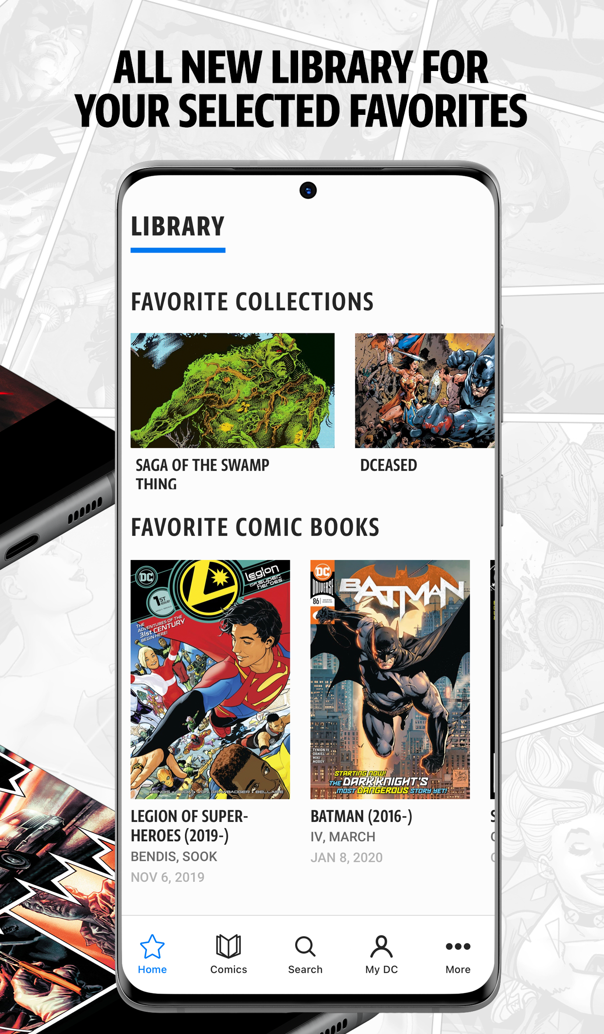 Follow your favorite heroes like Wonder Woman, Batman, Superman and Aquaman through curated collections and key storylines like Flashpoint and Dark Nights: Metal. Save collections, favorites and custom lists in our MyDC library and download issues for unlimited offline reading.