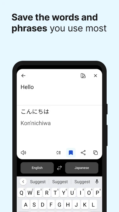- Saved translations: tap the bookmark icon to save words and phrases for future reference