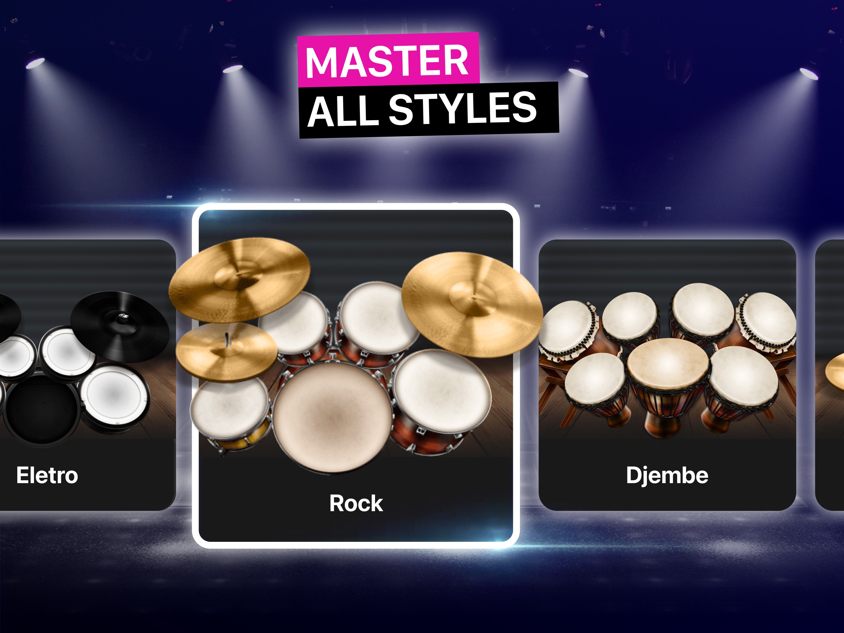 From the moment you tap the screen, the Drums app mimics the response of a real drum set—snare, kick, cymbals, toms, and more. No complicated setup, no gear required. Just open the app, pick your favorite kit (Rock, Djembe, Electro, etc.), and start playing.