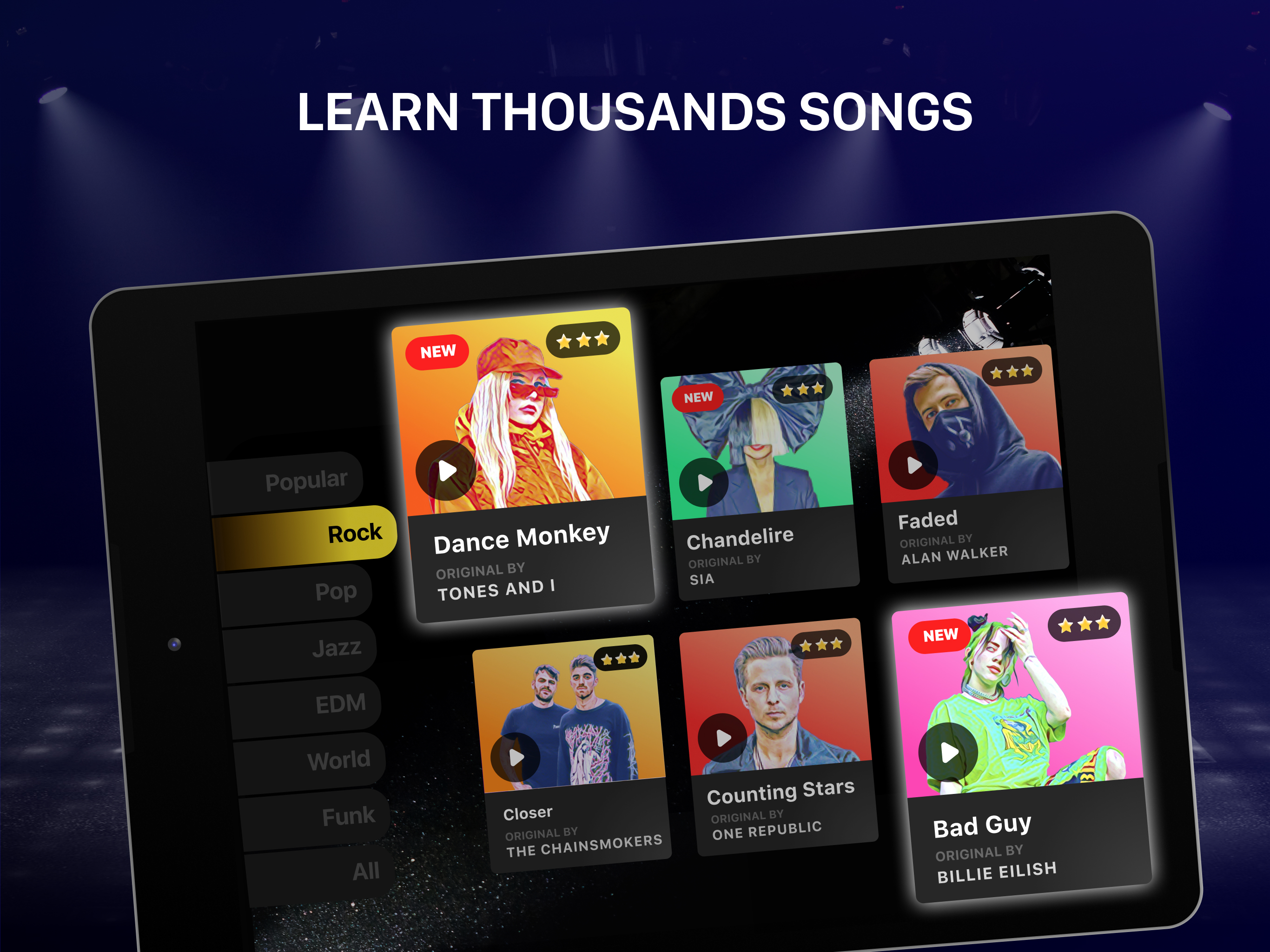 What truly sets this app apart is its learning-focused design. New to drumming? No worries. With structured lessons spanning multiple difficulty levels, you’ll progress from simple beats to complex rhythms in no time. The app includes thousands of songs to learn, all grouped by style and skill level.