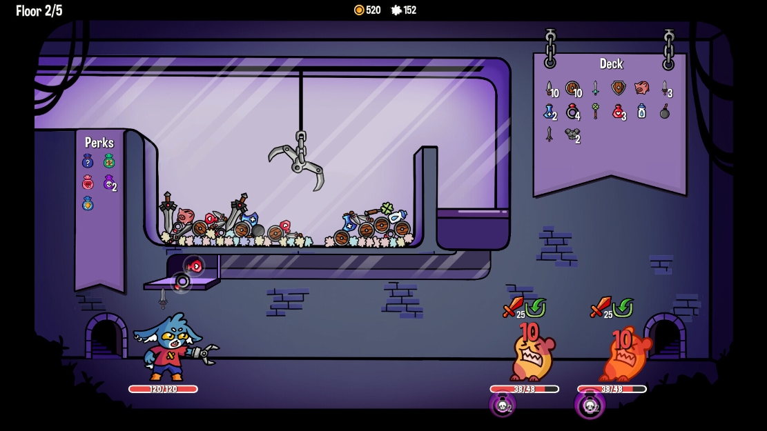 In order to improve his luck in gambling, the wicked dungeon lord has severed your left rabbit paw and now wears it as a lucky charm. Armed with a trusty claw to replace your lost limb, you must fight your way through the dungeon to reclaim what is rightfully yours!Dungeon Clawler combines deck building with elements of rogue-like mechanics, and most importantly, introduces a claw machine.Deck Building:Construct your own unique deck of cards to effectively battle various enemies. Choose your cards wisely, as certain items interact with each other and with the claw machine.Lucky Charms:Discover powerful good-luck charms that can swiftly alter the gameplay and significantly assist you in your quest.Mystery Locations:Embark on expeditions into mysterious locations where you will uncover valuable treasures as well as encounter strange and perilous elements.Push Your Luck:Spend your hard-earned coins in the dungeon's pachinko machines. With a stroke of luck, you may acquire powerful items that will aid you on your journey.Customization & Permanent Unlocks:Pay a visit to Grandma, who might just knit you a brand new sweater! Clothing items come with unique perks that give you an advantage in your next descent into the dungeon.