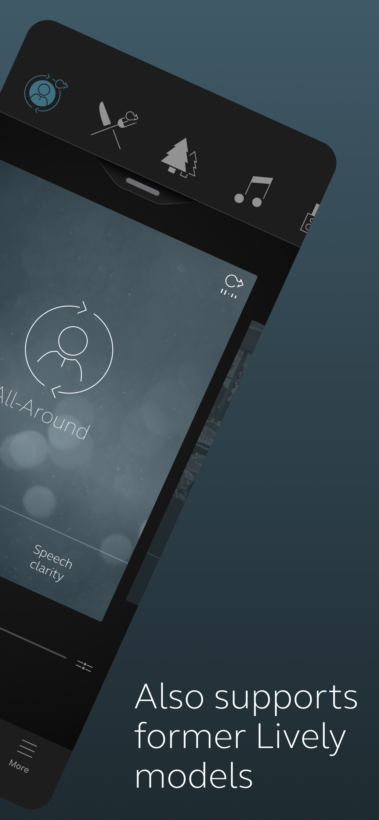 • Tinnitus manager: Adjust sound variation and frequency of the Tinnitus Sound Generator. Select Nature Sounds (feature availability depends on your hearing aid model and the fitting by your hearing care professional)