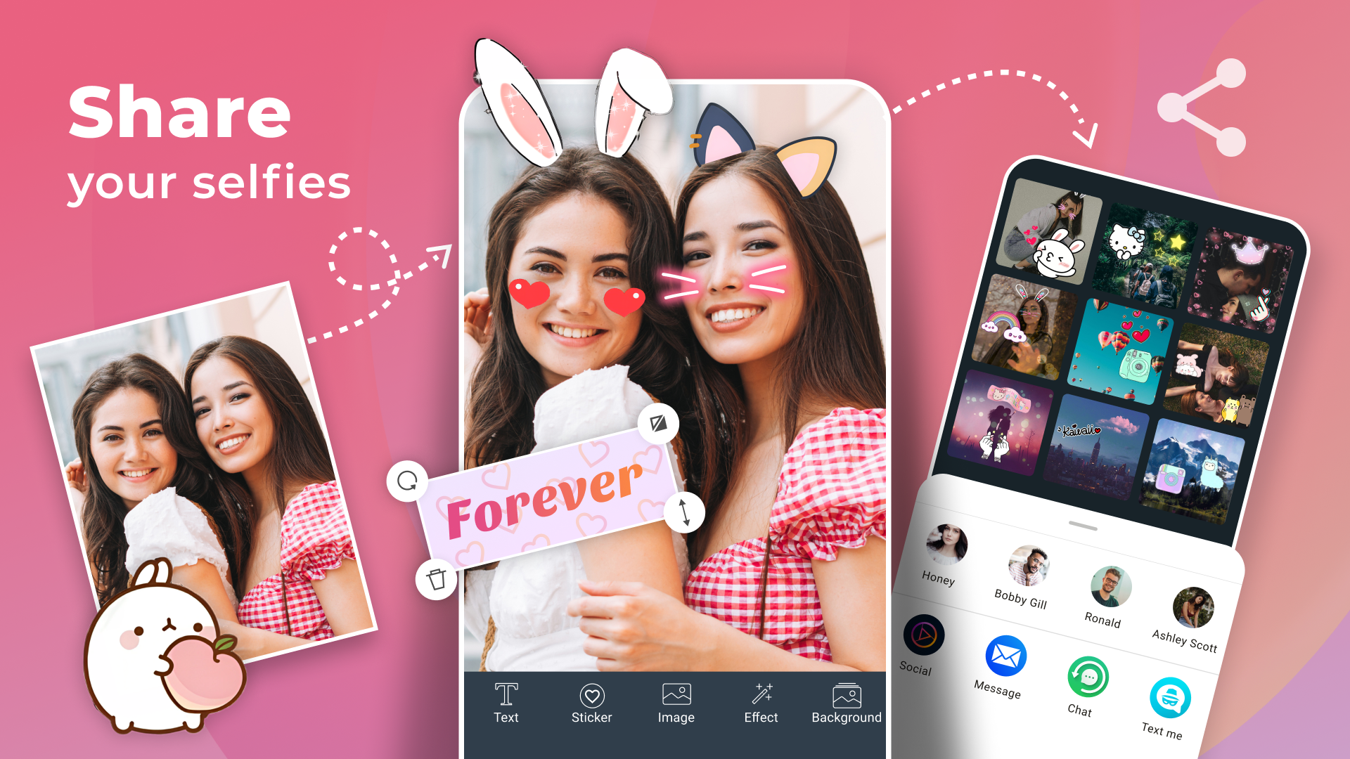 With our Selfie Beauty Camera Face Filters, you can capture your favorite moments and impress your friends. Whether you want to add a playful touch to your photos or create stunning images, our selfie effects have covered you. Try different effects, like bunny ears, and have a blast with your friends!