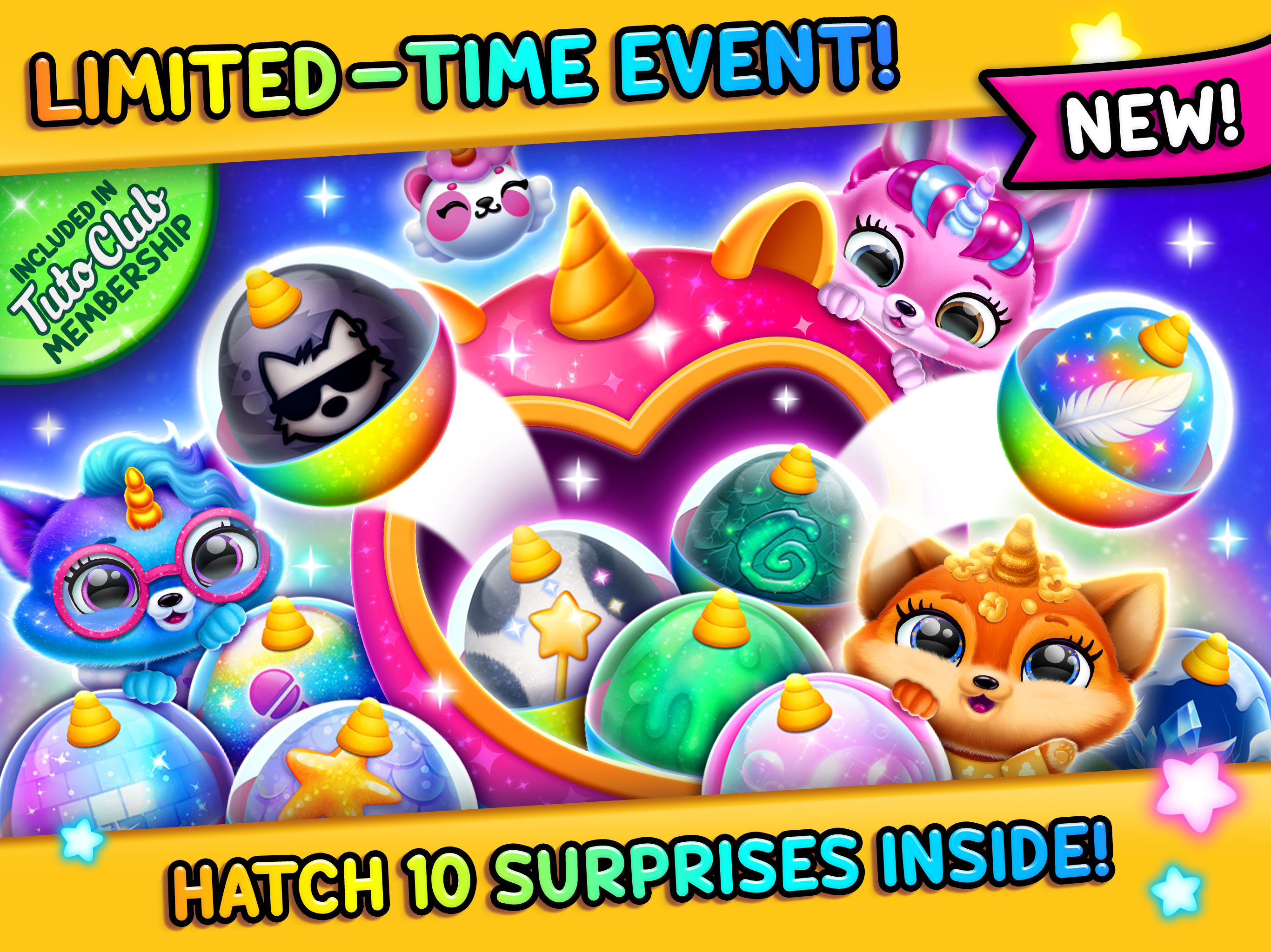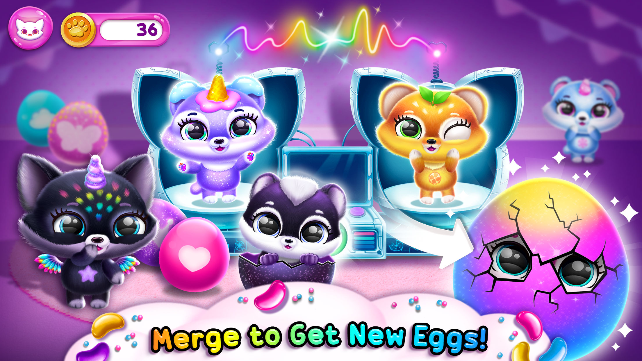 Hatch every pet from a surprise egg! Just pop two cute Fluvsies into a magical merging machine, and voila – a brand-new egg is ready to hatch! Grow your virtual pet, care for him, and play cute animal games together!