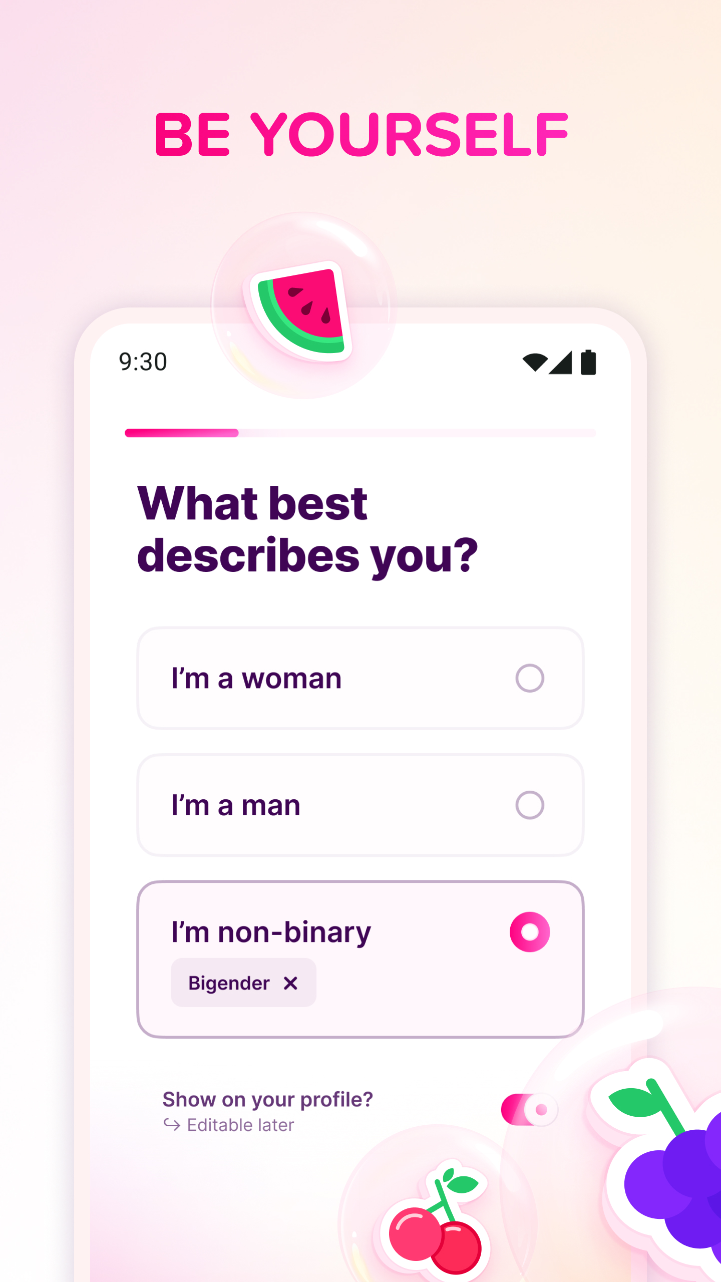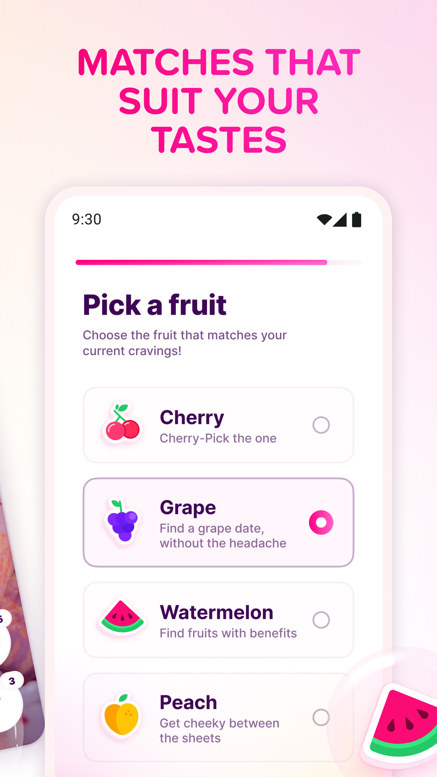 How many times have you swiped right on dating apps, only to realise that the person on the other end of the chat is on a completely different page to you? Yep, thought as much! That's why with Fruitz you state what you're looking for from the start, by choosing a fruit that represents the type of relationship you want: