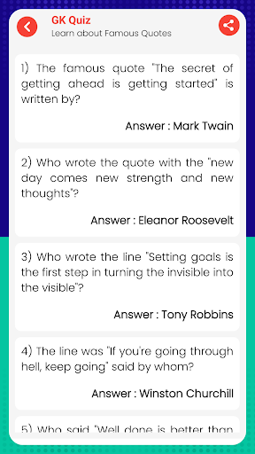This g.k quiz app contains 30+ streams of general knowledge questions with answers