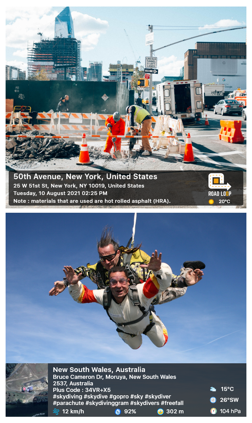 ➝ Put Longitude, Latitude, Address, Date-Time, Location stamp to photos