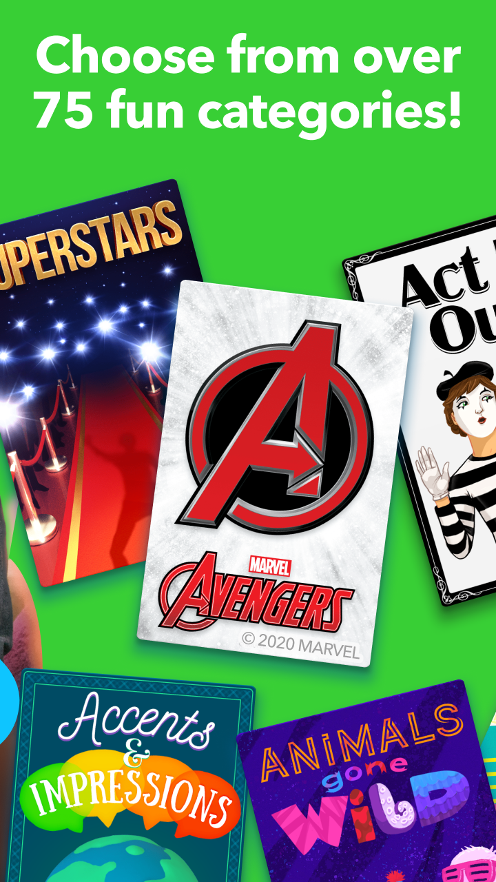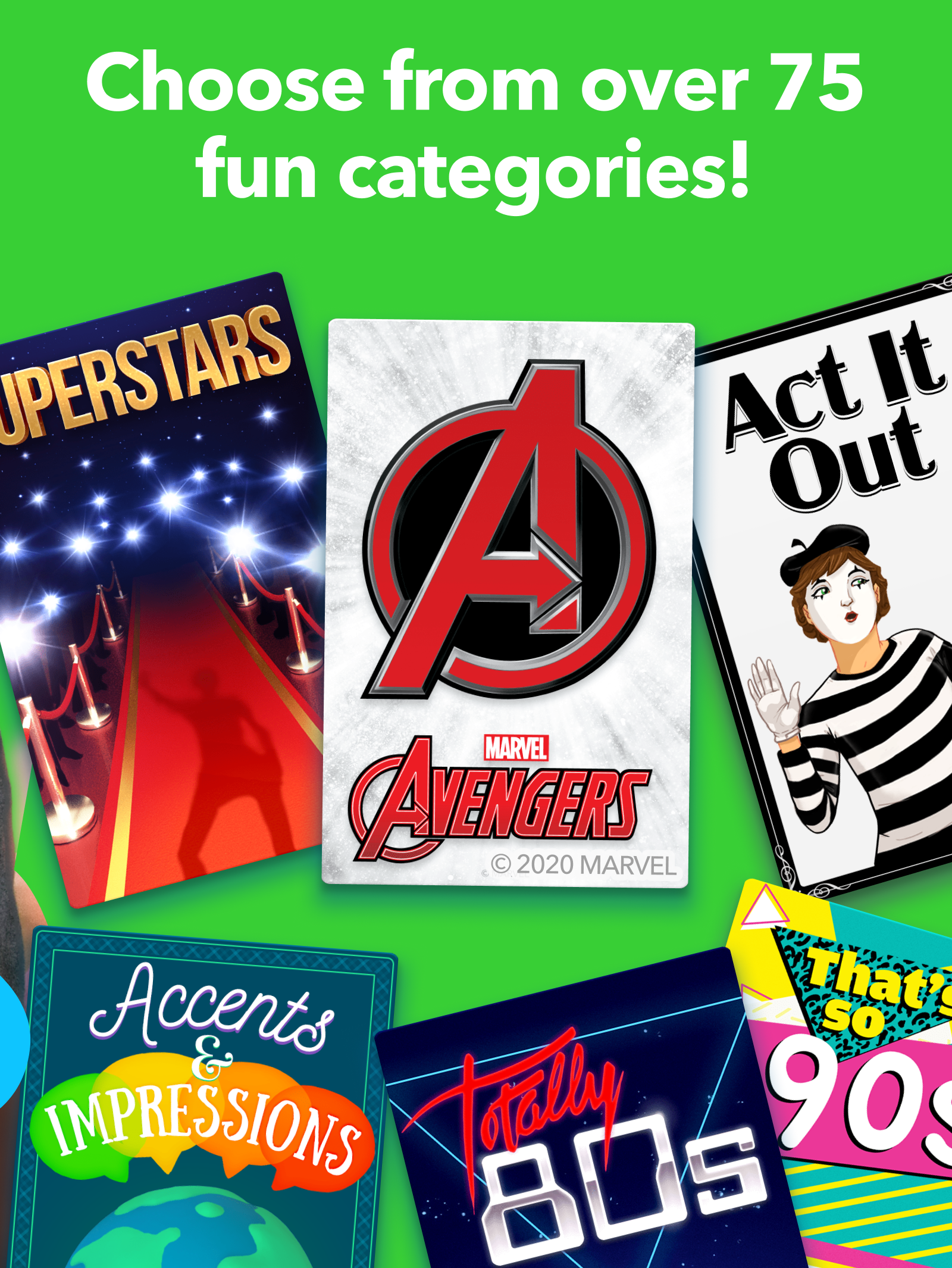 Guess the word in one of our popular categories, including fun game decks like Harry Potter, Friends, and Marvel, or create a category all your own!