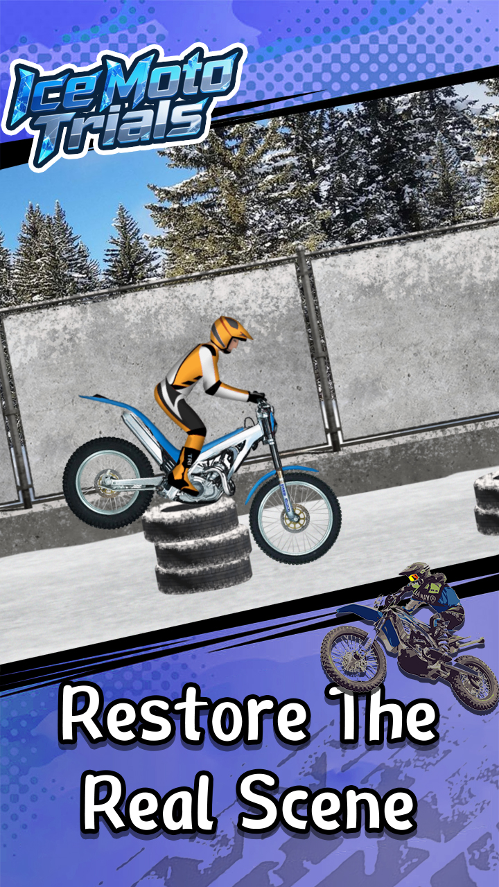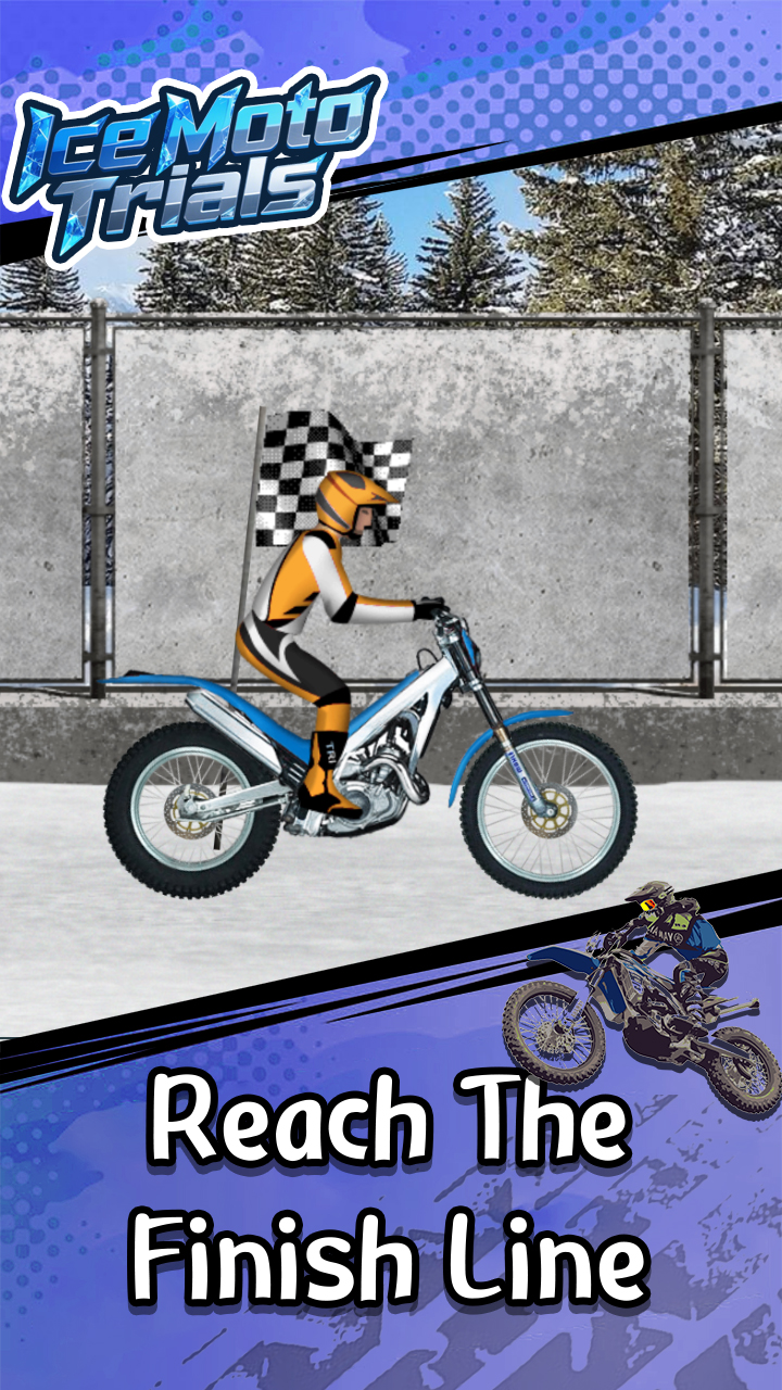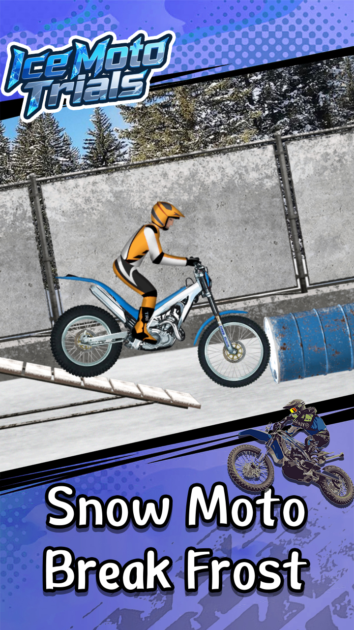 Race through snowy tracks in Ice Moto Trials! Navigate a moto over tricky obstacleslike ramps and barrels, Aim to reach the finish line, breaking frost and restoring reallife- like scenes, Feel the thrill of ice - speed challenges as you conquer wild,wintry ends, With simple controls, tackle each level’s unigue hurdles. Perfect forfans of motorbike - stunt games test your balance and speed to master the frozencourses!