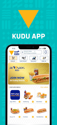 • Dine-In: Order in advance and have your meal at a KUDU restaurant without having to wait in line.