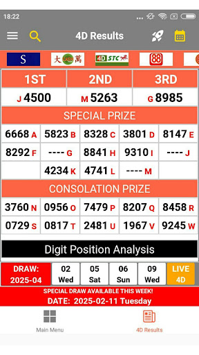 Live 4D results with history, prediction, and analysis for MY & SG users.