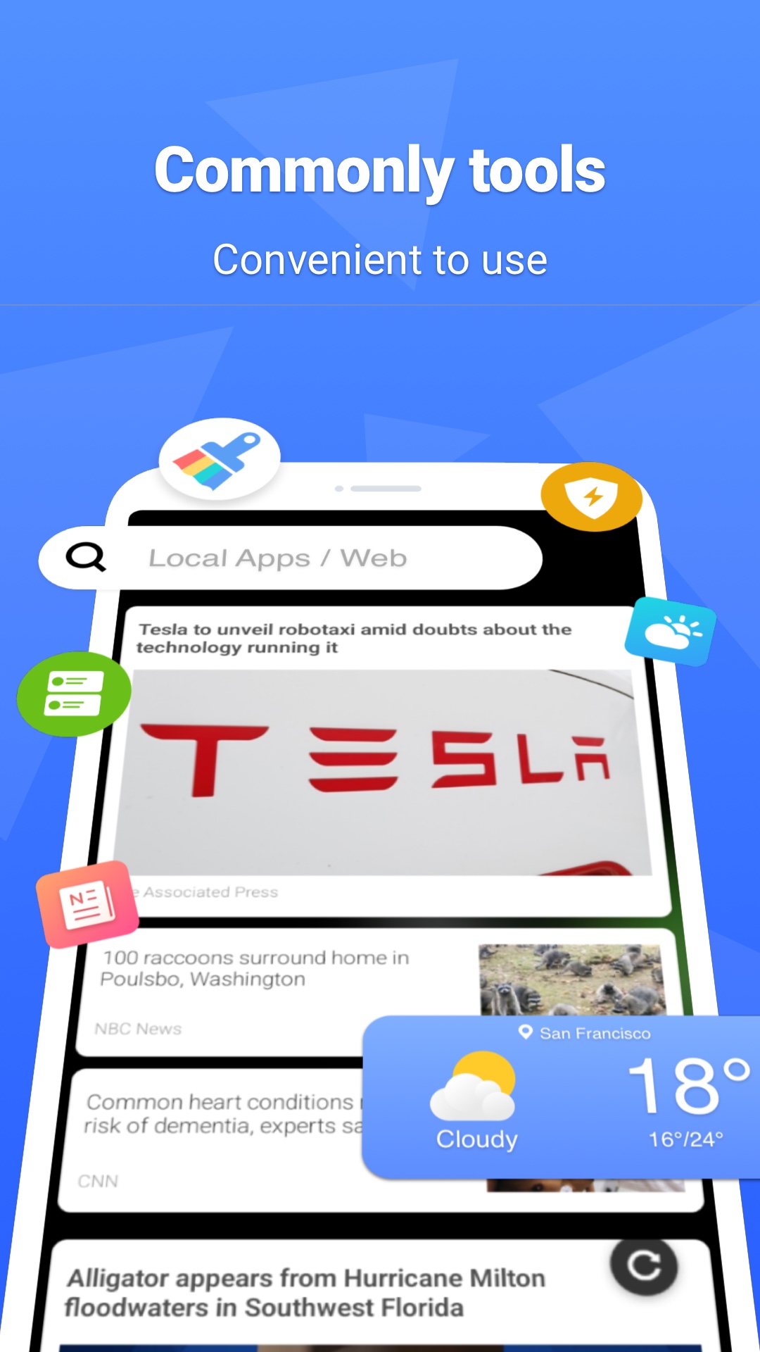 We have integrated a variety of common tools such as weather, notification bar cleaning, news, themes, wallpapers, etc. to make it convenient for users to use.