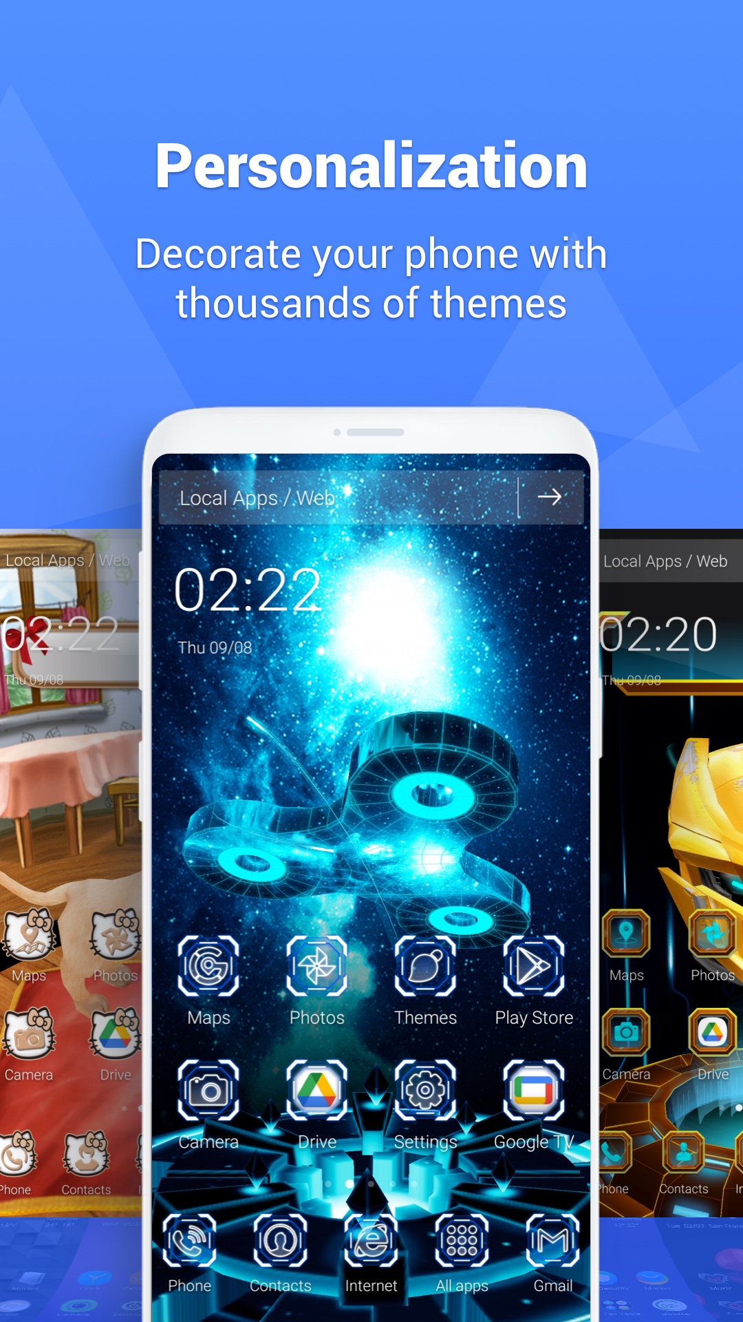 Impress your friends with Live Launcher's clean look and customize it to your needs. Personalize it with our integrated icon pack fonts, and wallpapers, or use your own.