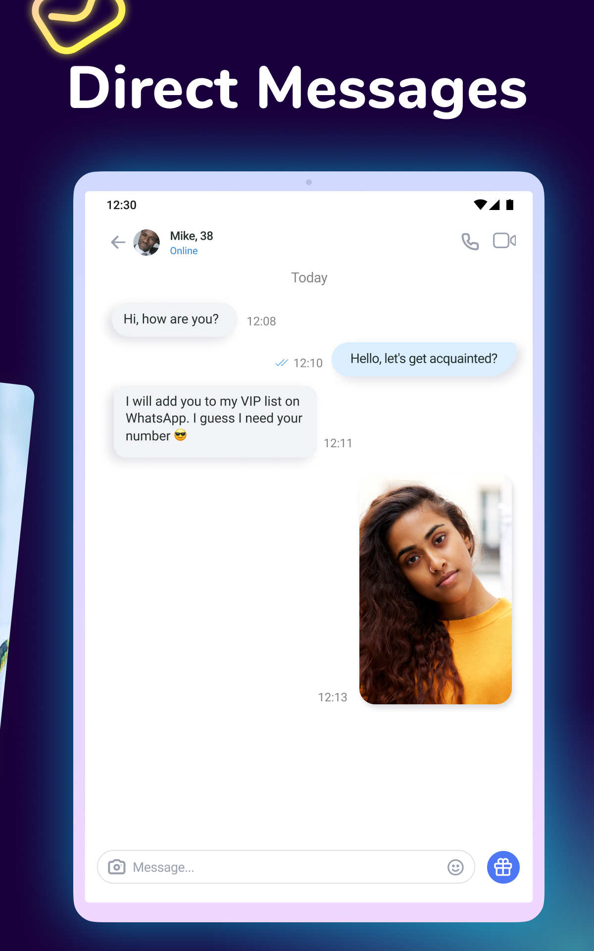 There are so many men and women around who'd wish to meet, chat, flirt or go dating with you! Whether you want to find a friend or find love, this app will be the best tool for achieving the goal.