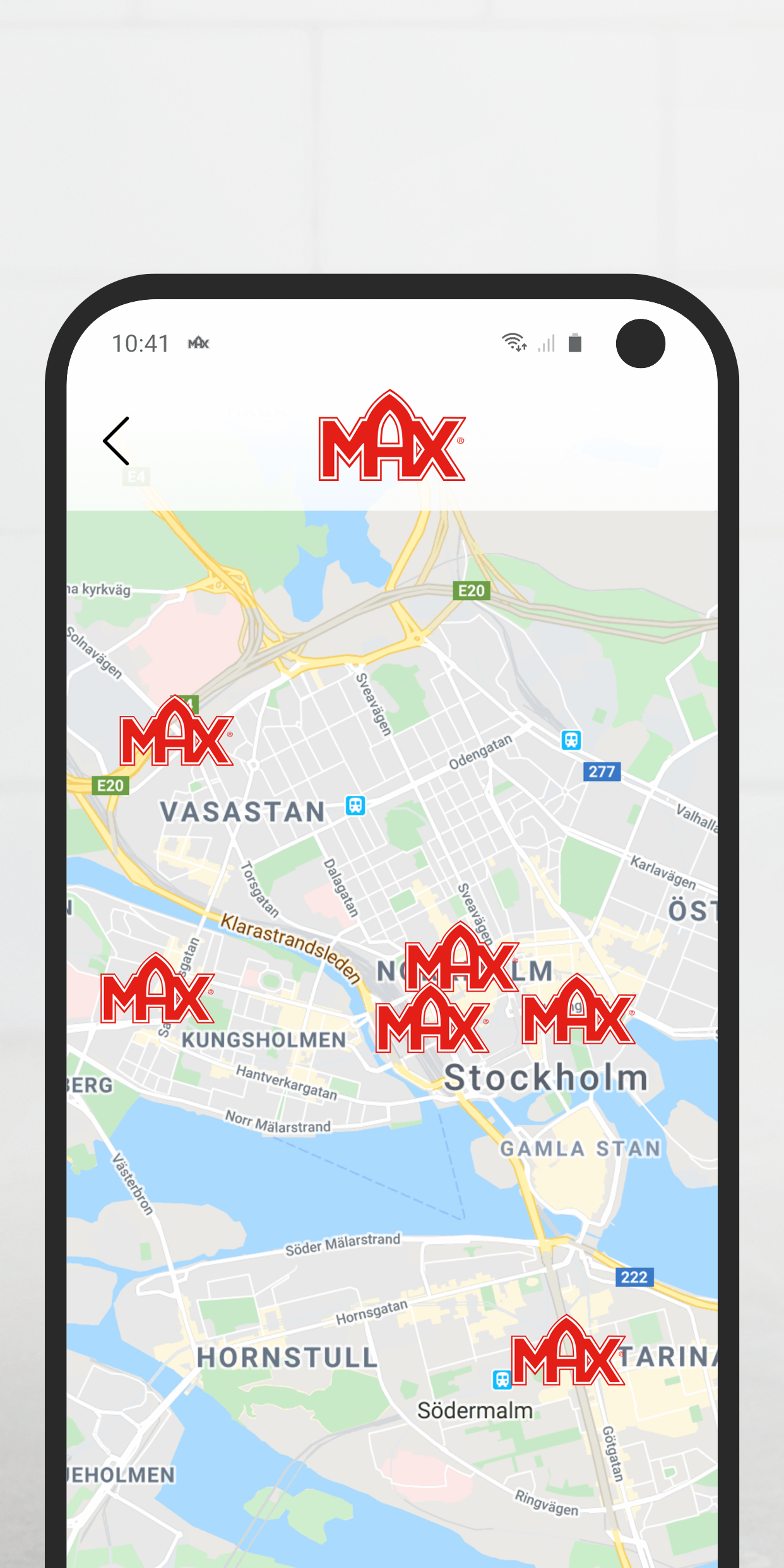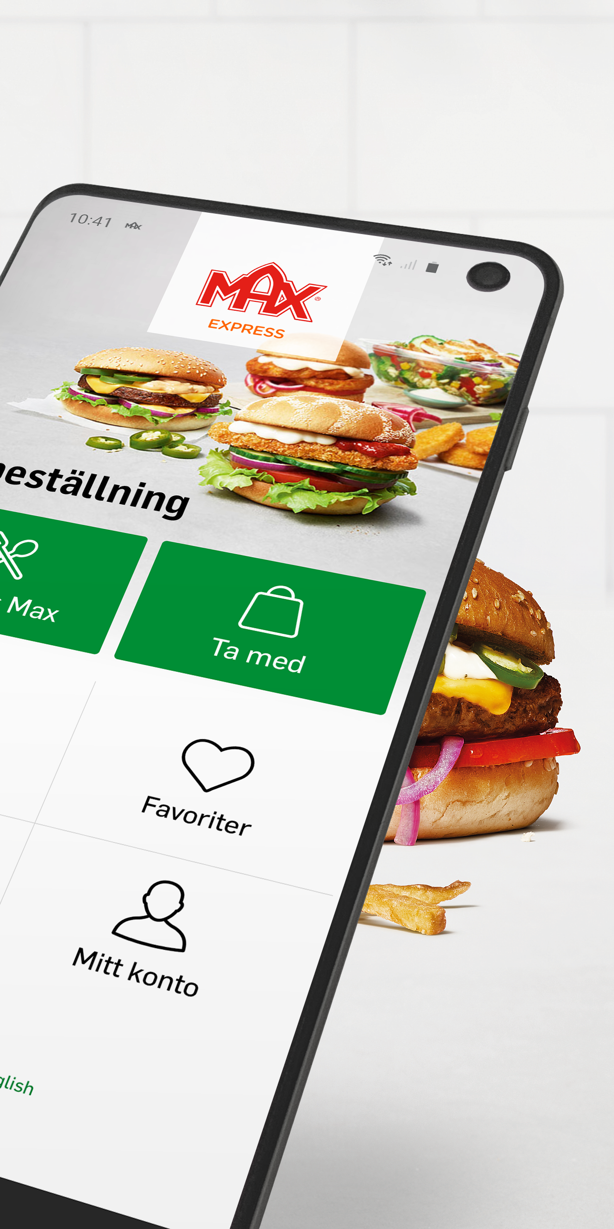 Locate Max restaurants, customise burgers and save orders as favourites.